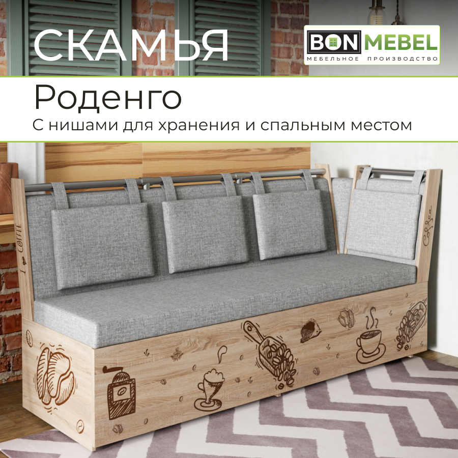 СохранитьСкамья прямая BONMEBEL со спальным местом Роденго Дуб сонома/Рогожка серый интересное: