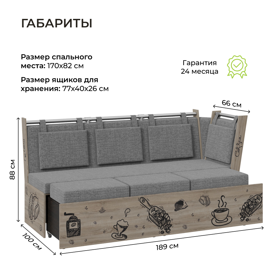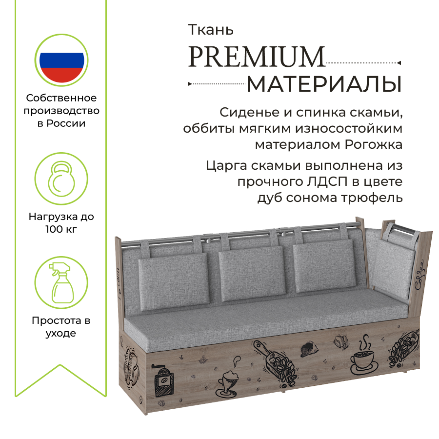 Кухонный диван "Роденго" PRIME (со спальным местом) L=189 см, ящик для хранения, цвет Ателье светлый/Ловерс Серый