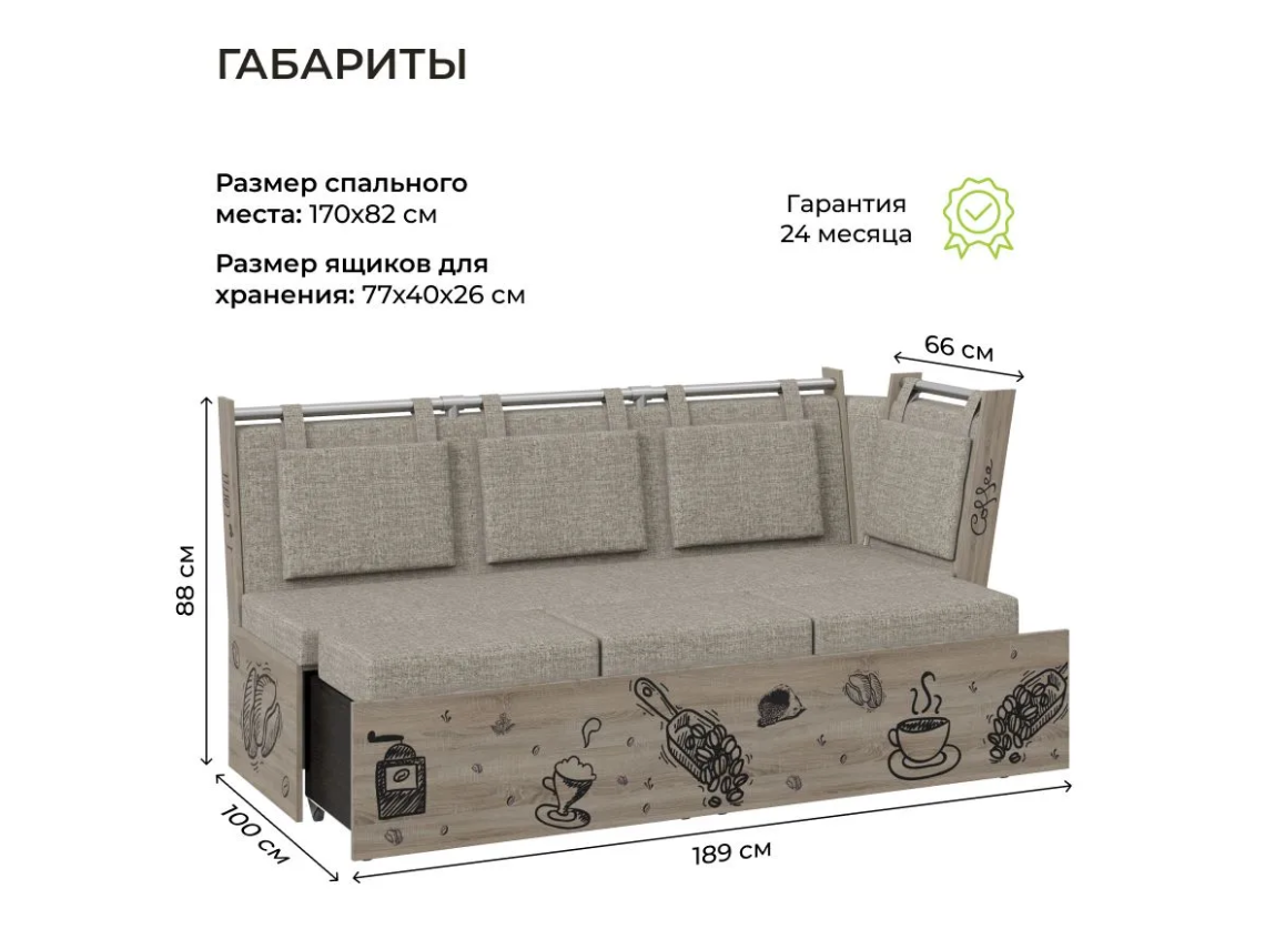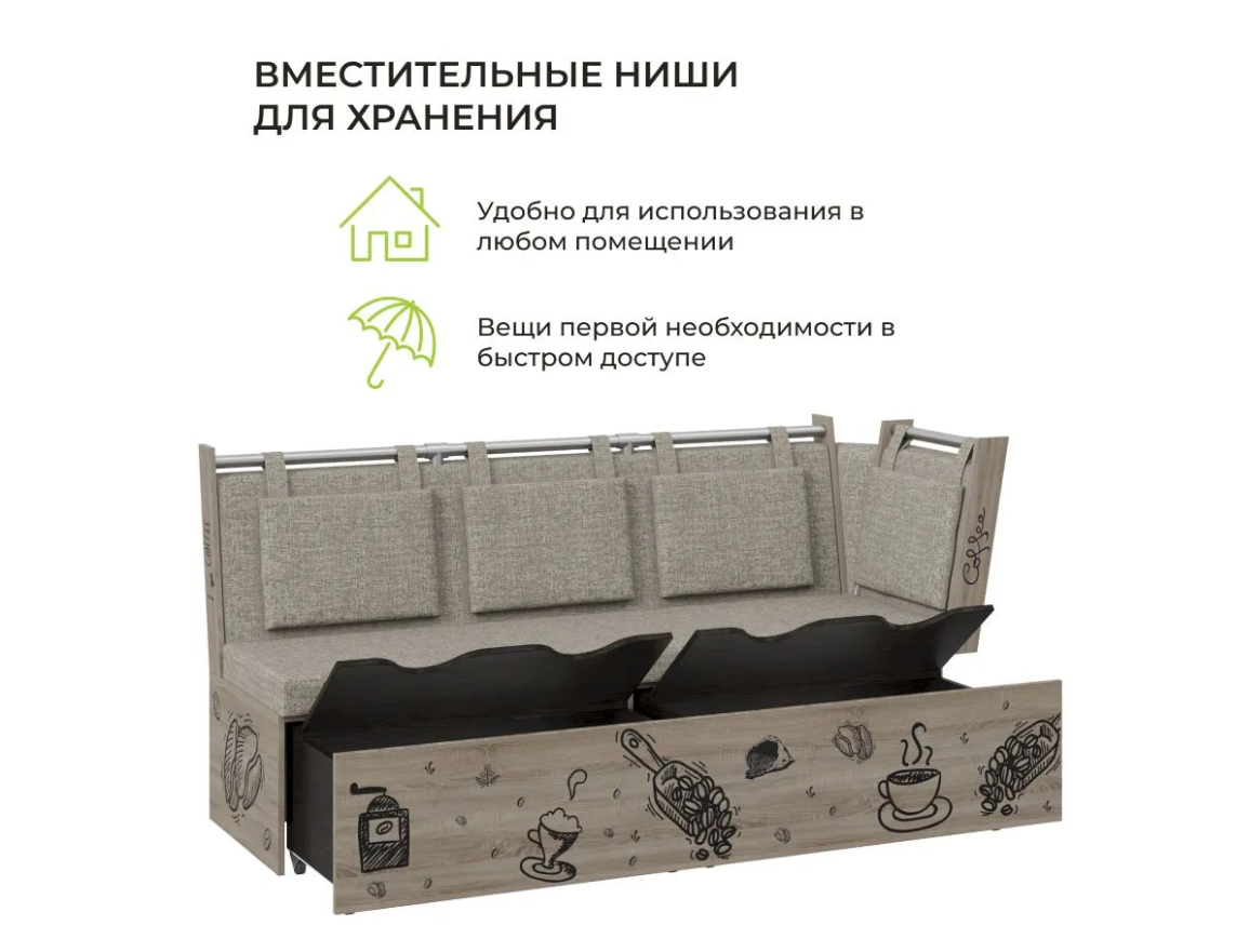 Кухонный диван "Роденго" PRIME (со спальным местом) L=189 см, ящик для хранения, цвет Ателье светлый/Ловерс Серый