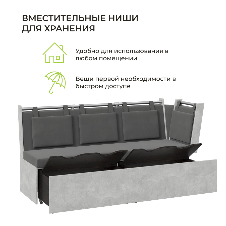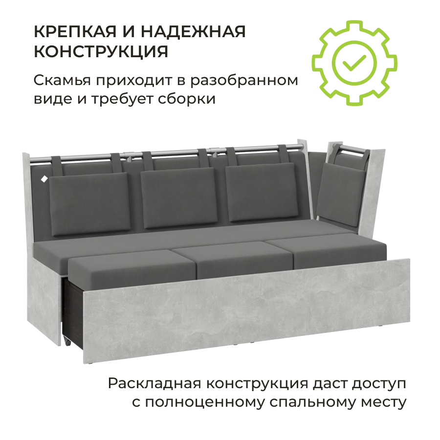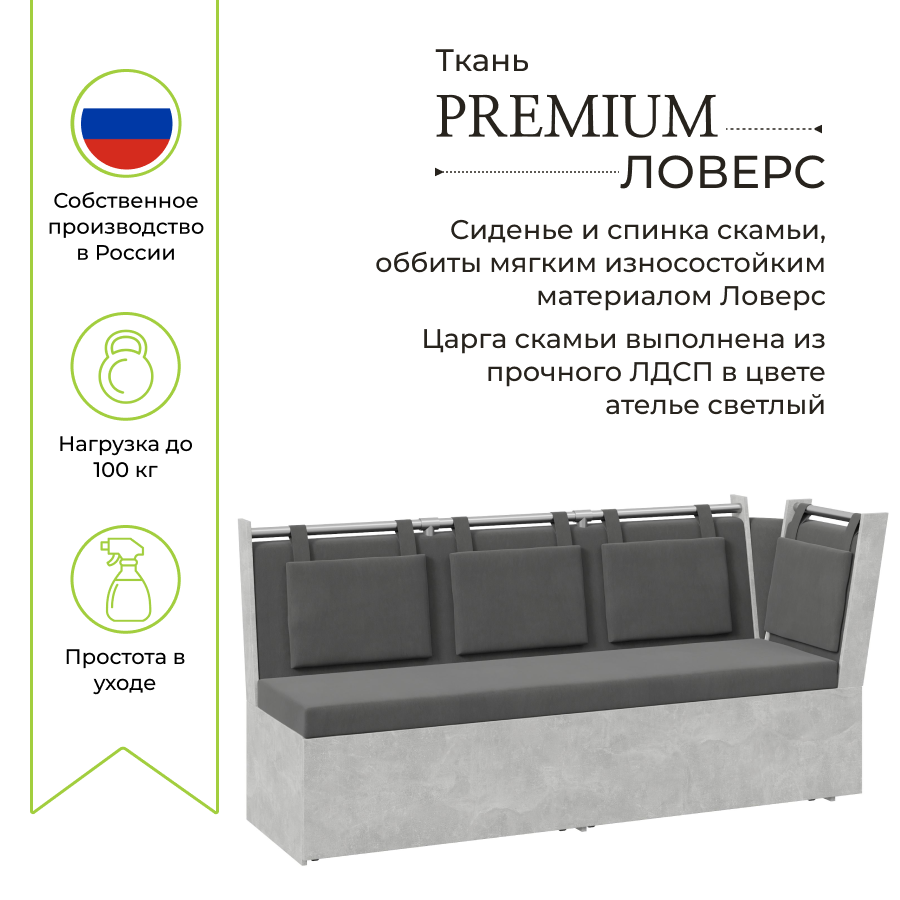 Кухонный диван "Роденго" PRIME (со спальным местом) L=189 см, ящик для хранения, цвет Ателье светлый/Ловерс Серый
