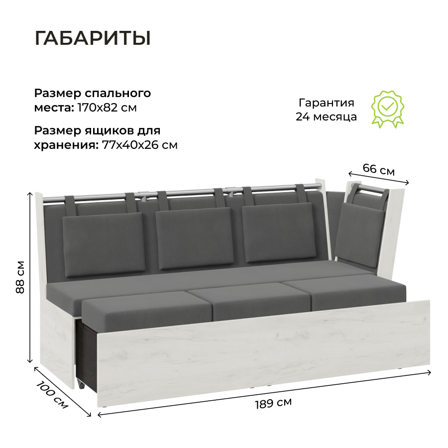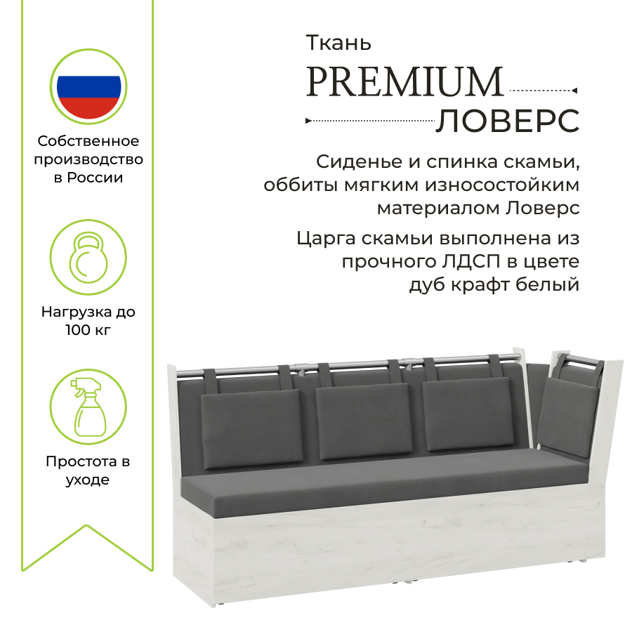 СохранитьСкамья прямая со спальным местом "Роденго" BONMEBEL Дуб крафт белый /Ткань Ловерс серый интересное: