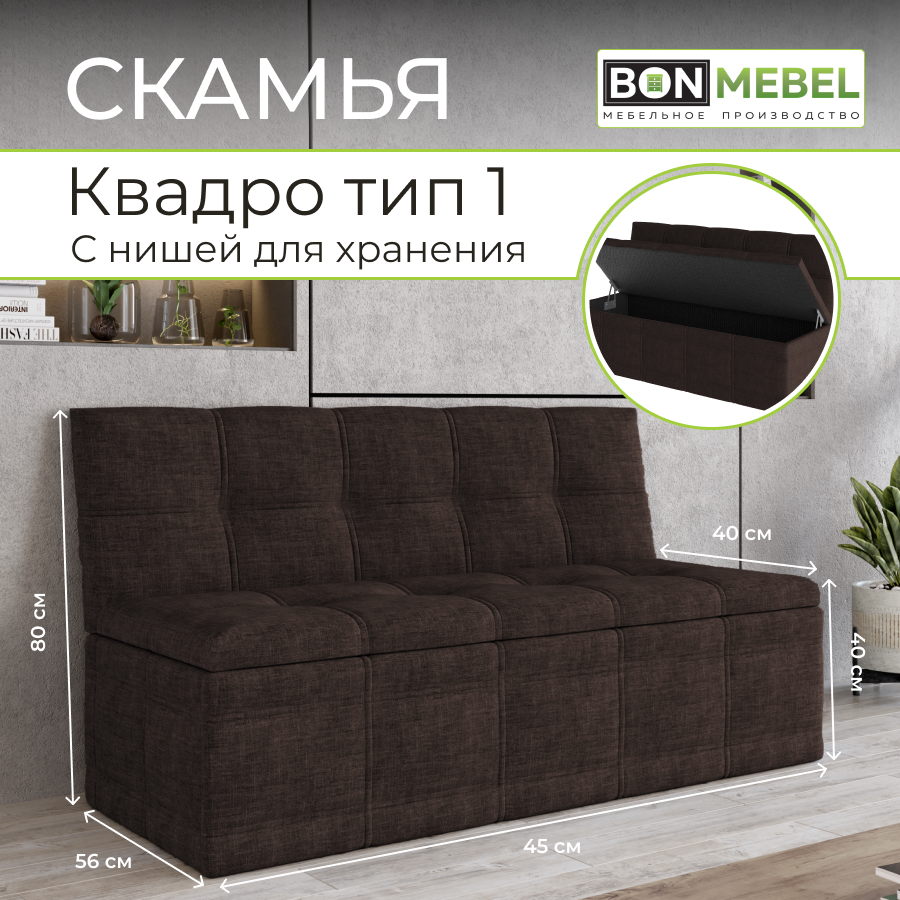 Прямой диван Квадро Тип 1 BONMEBEL ТК Коричневый, механизм Нераскладной, 125х56х80 см интересное: