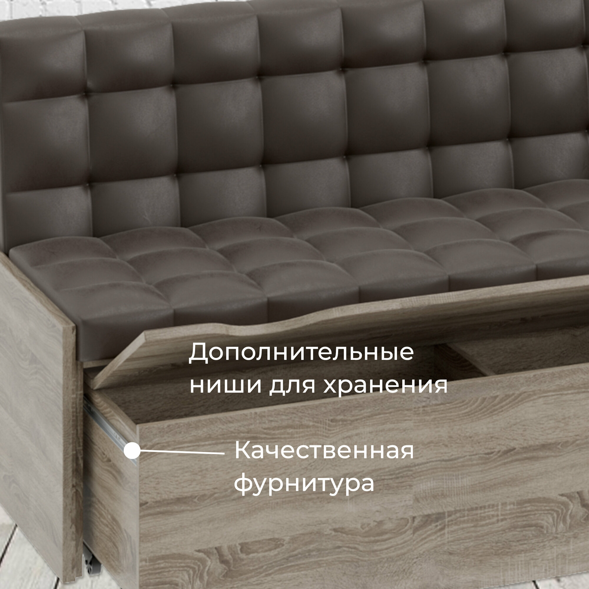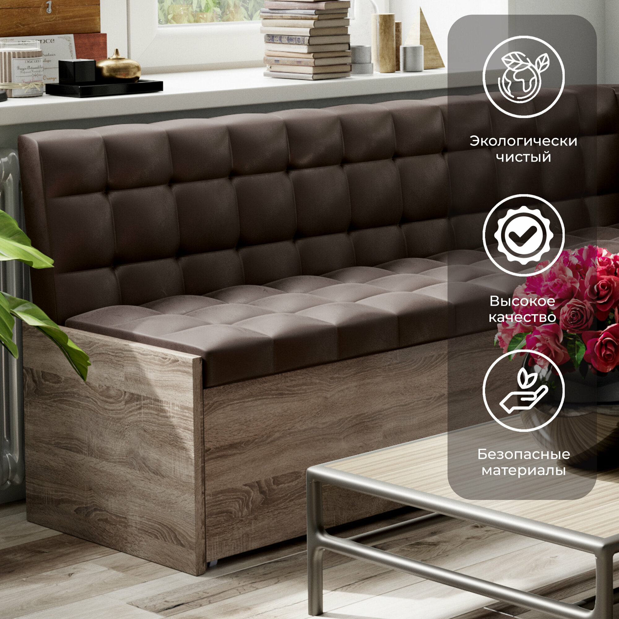 СохранитьКухонный диван со спальным местом и ящиком, кухонная скамья, кухонный уголок коричневый (ДхШхВ) 194х114х82 см, Форест интересное: