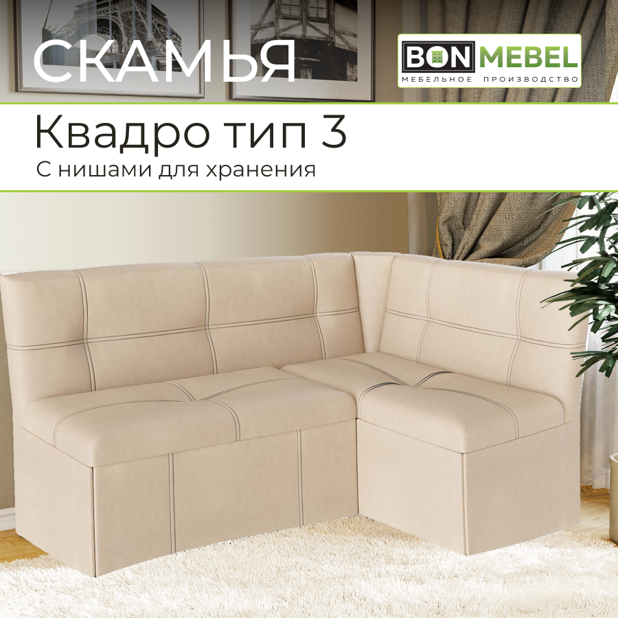 Кухонный уголок BONMEBEL Квадро Тип 3 Исп 2, ТК Бежевый, диван, скамья угловая, диван угловой