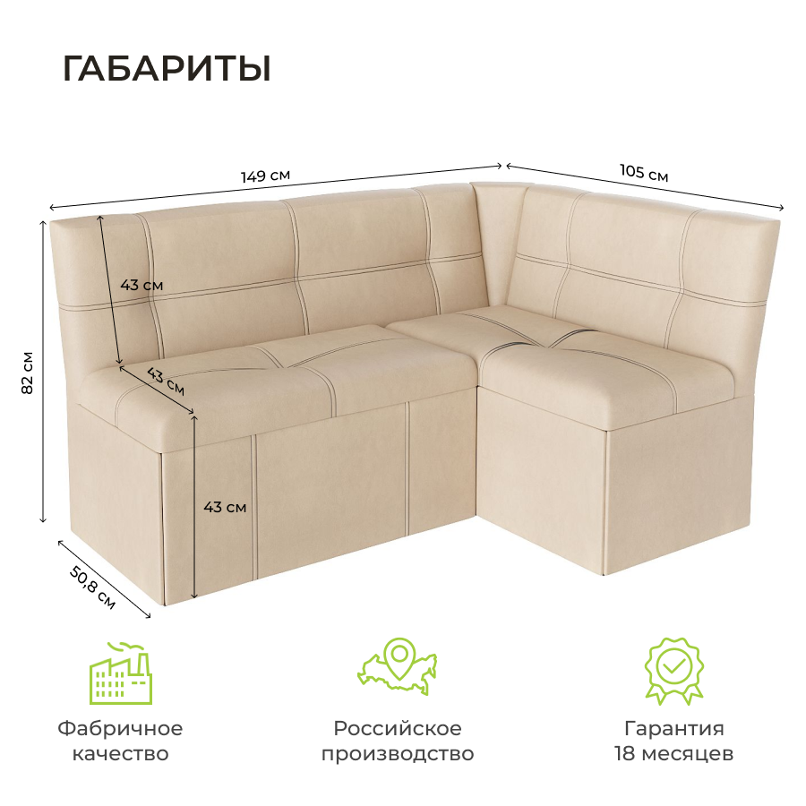 СохранитьКухонный уголок Квадро тип3, КЗ Бежевый, БонМебель 149х105х82 см интересное: