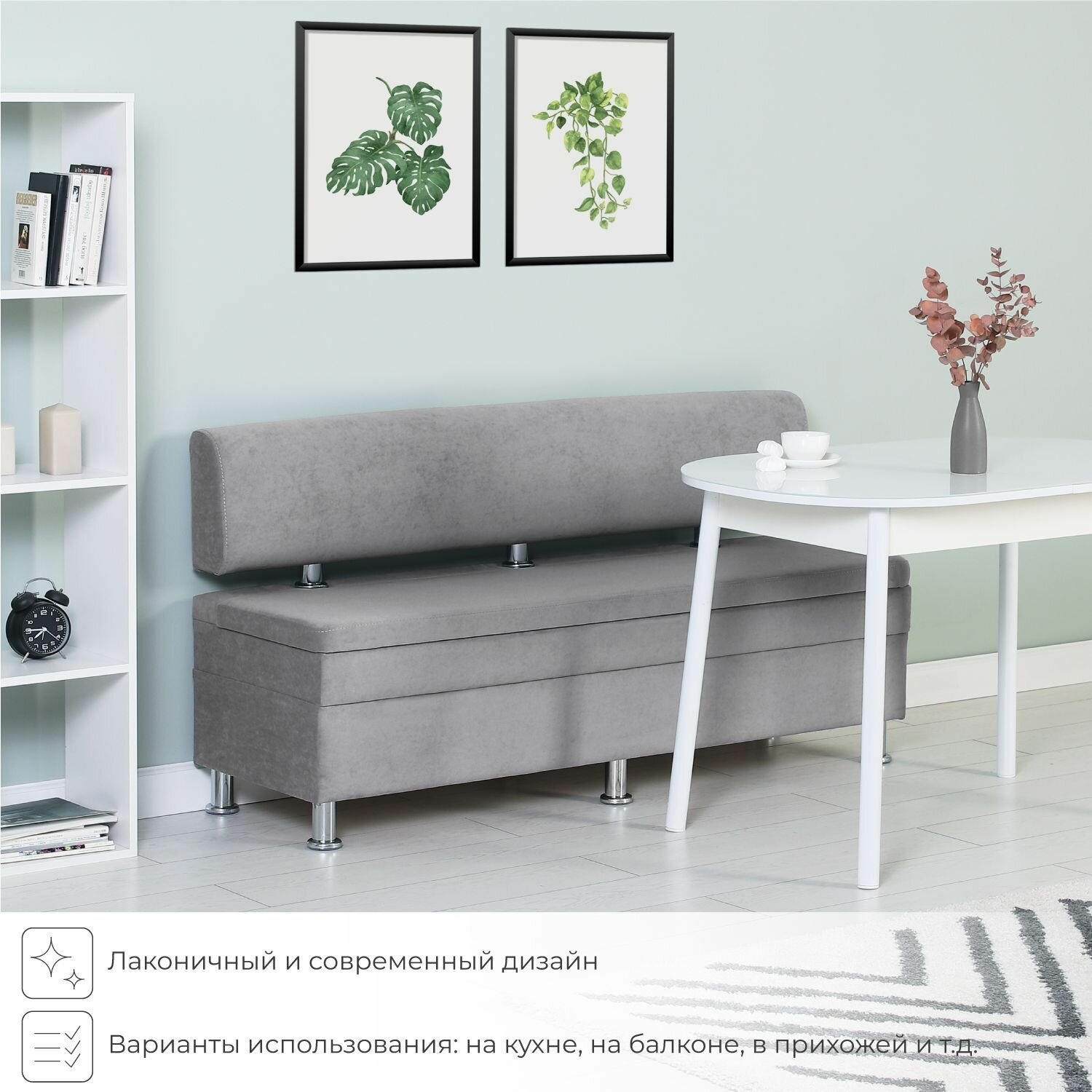 Диван на кухню, прямой, на балкон, в прихожую норта Hippo 1300х490х770 c ящиком для хранения, серый