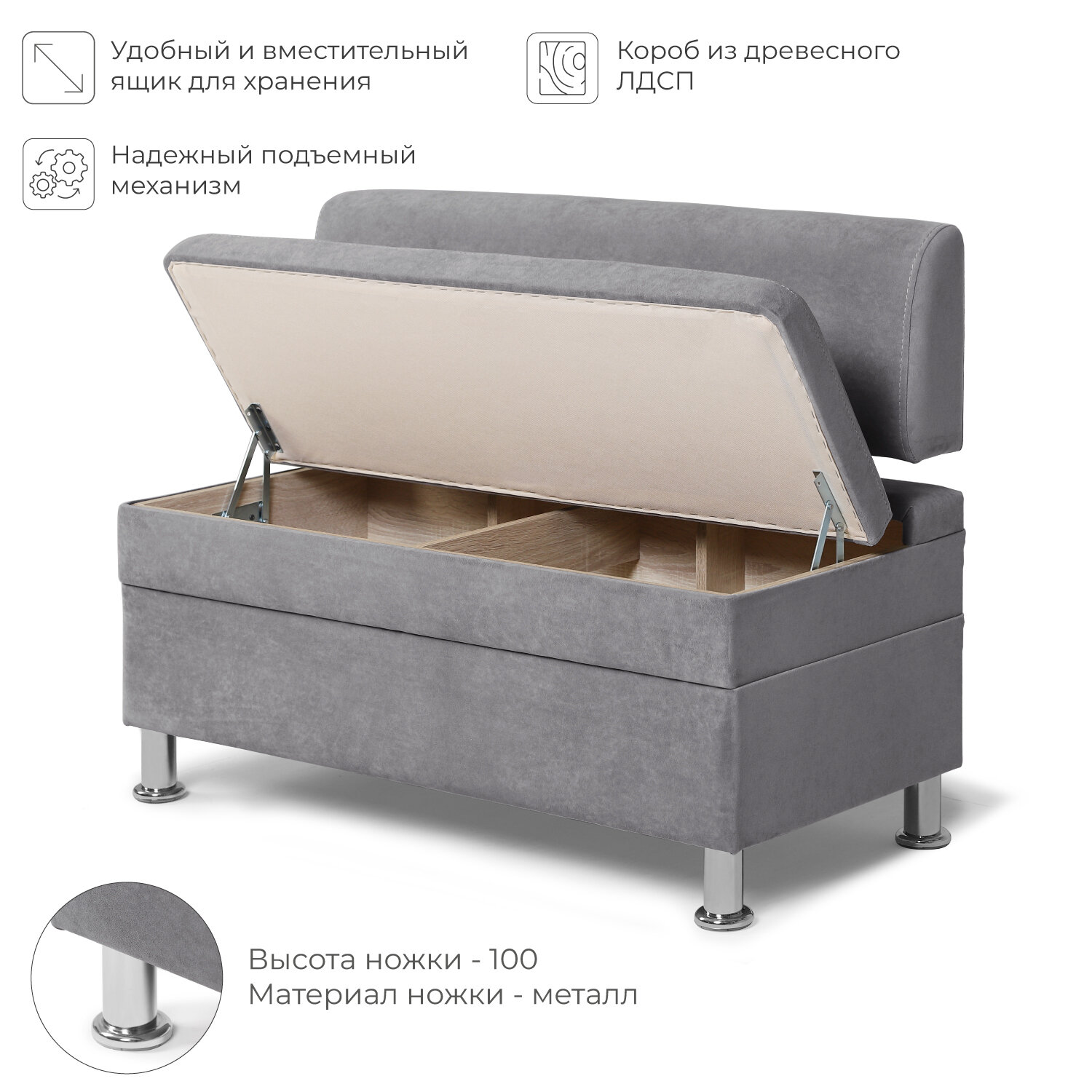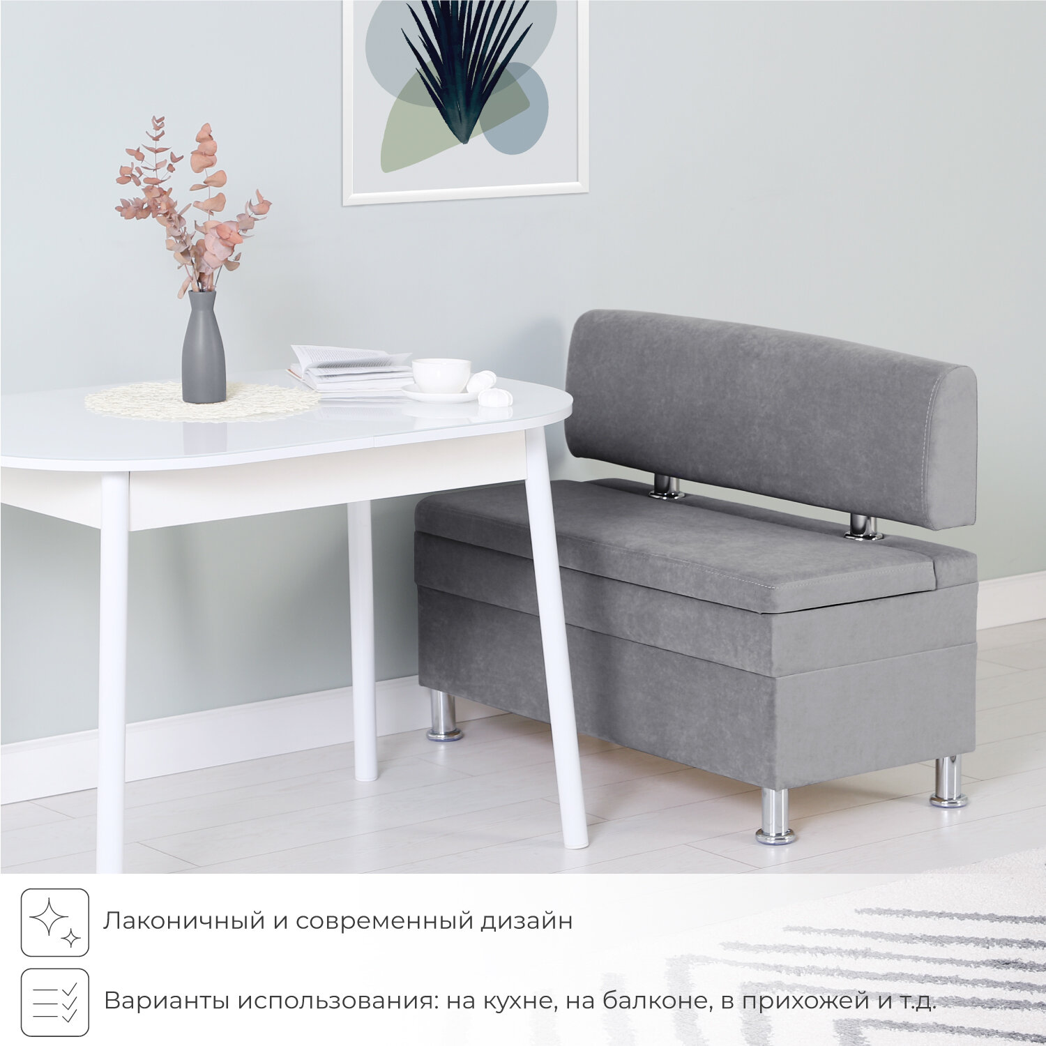 Диван на кухню, прямой, на балкон, в прихожую норта Hippo 1300х490х770 c ящиком для хранения, серый