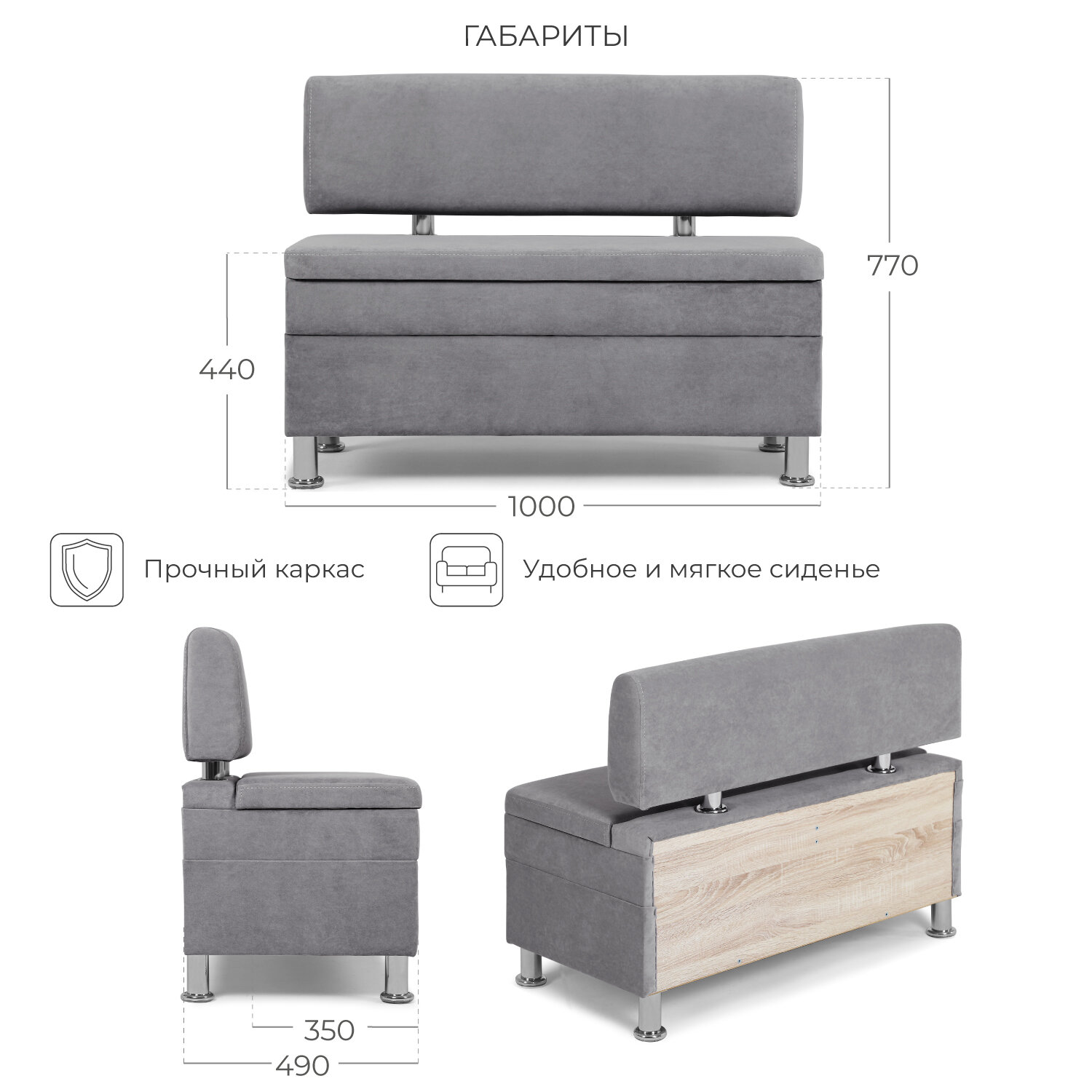 Диван на кухню, прямой, на балкон, в прихожую норта Hippo 1500х490х770 c ящиком для хранения, серый