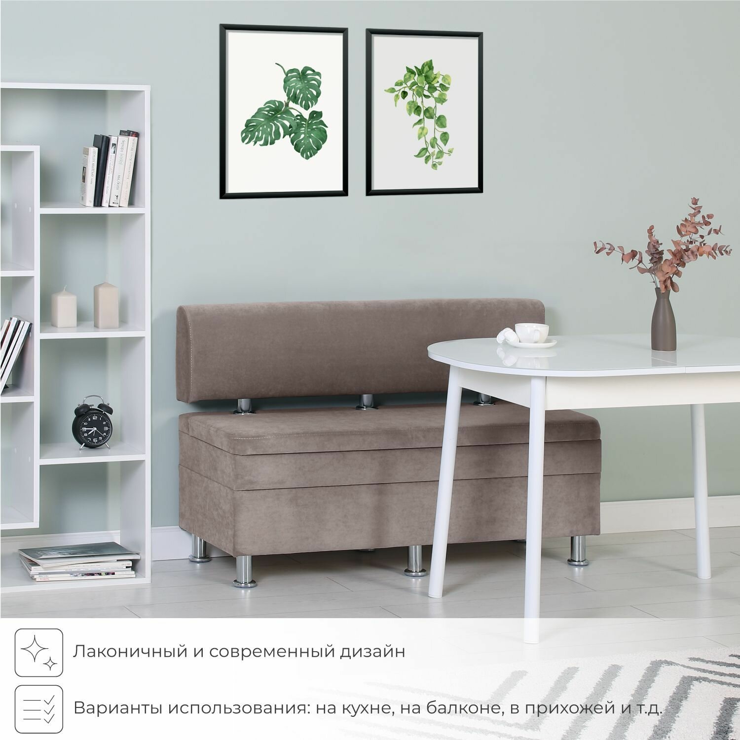Диван на кухню, прямой, на балкон, в прихожую норта Hippo 1300х490х770 c ящиком для хранения, светло-коричневый