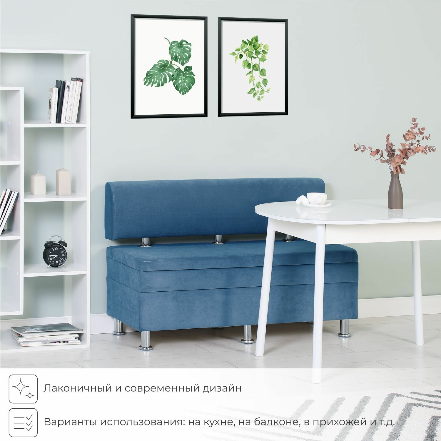 Купить Диван на кухню, прямой, на балкон, в прихожую норта Hippo 1200х490х770 c ящиком для хранения, синий