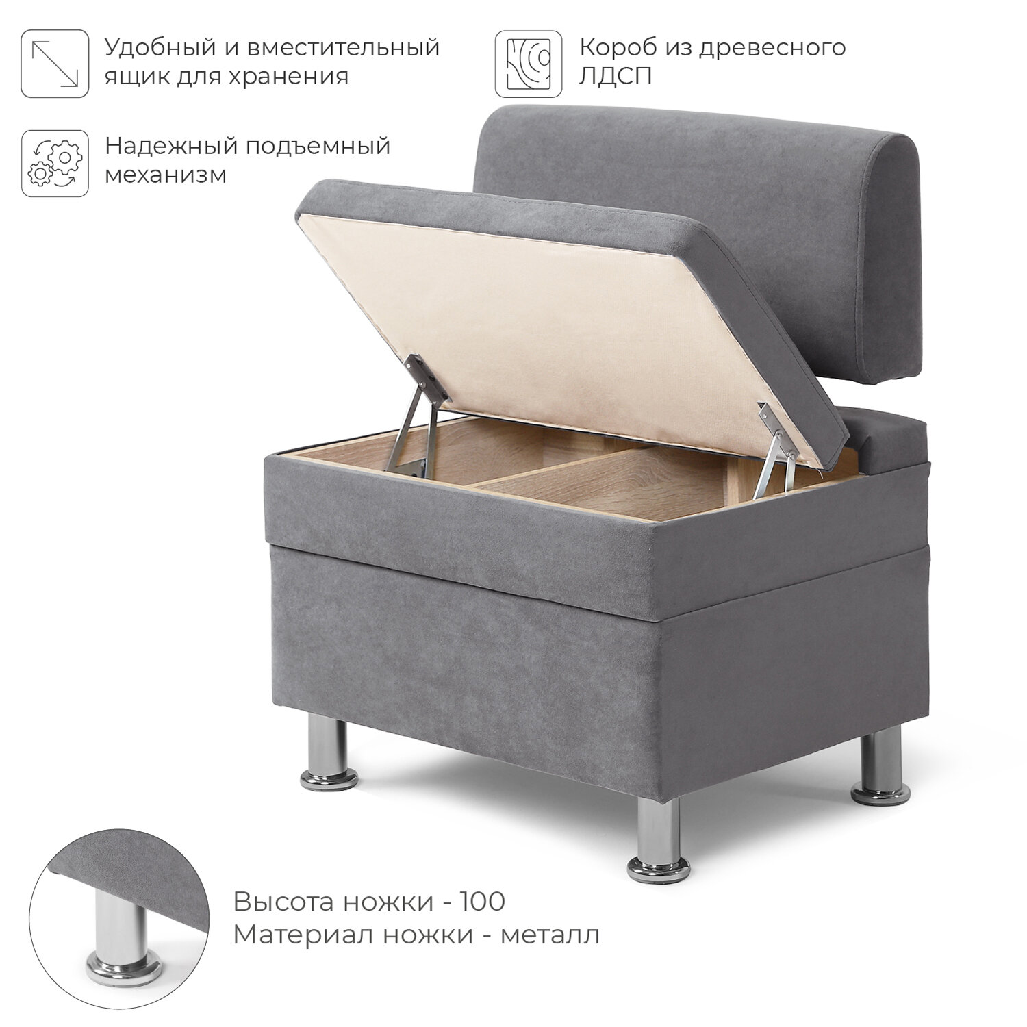 Диван на кухню, прямой, на балкон, в прихожую норта Hippo 1500х490х770 c ящиком для хранения, серый