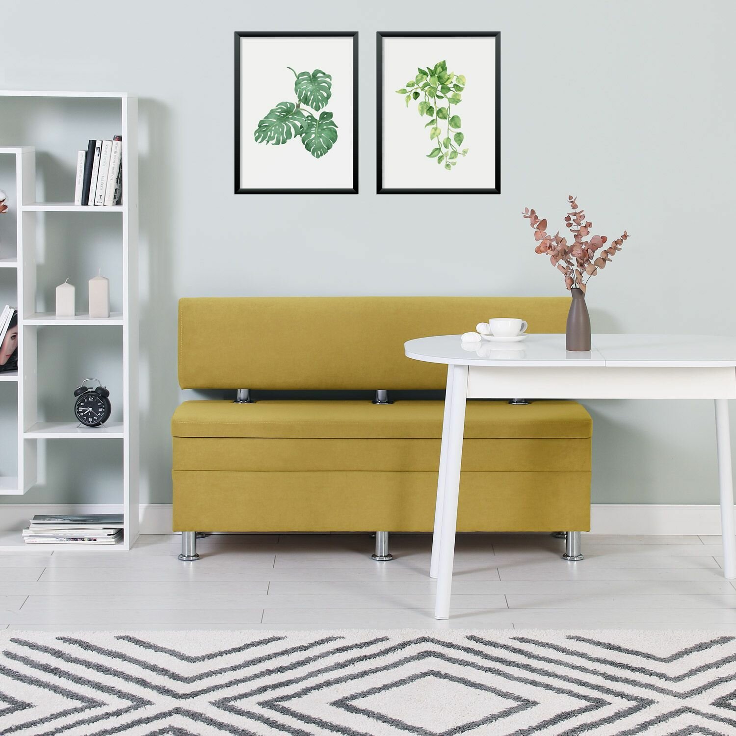 Купить Диван на кухню, прямой, на балкон, в прихожую норта Hippo 1300х490х770 c ящиком для хранения, горчичный