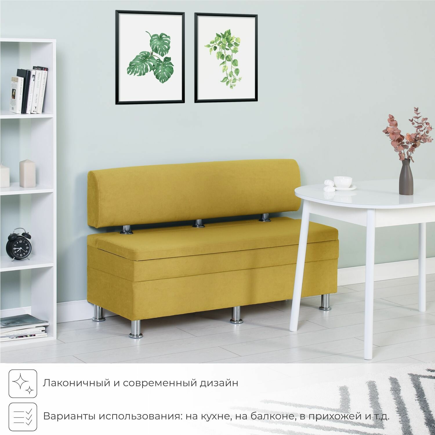 Диван на кухню, прямой, на балкон, в прихожую норта Hippo 1200х490х770 c ящиком для хранения, горчичный