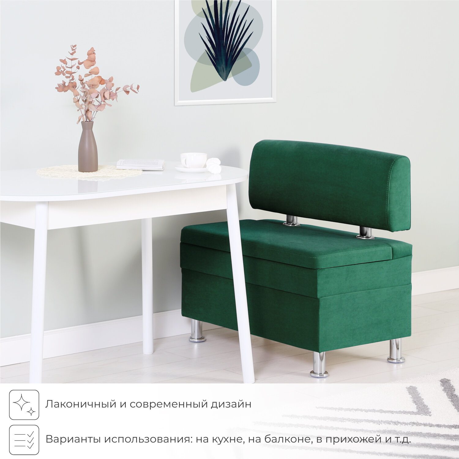 Диван на кухню, прямой, на балкон, в прихожую норта Hippo 1200х490х770 c ящиком для хранения, зеленый