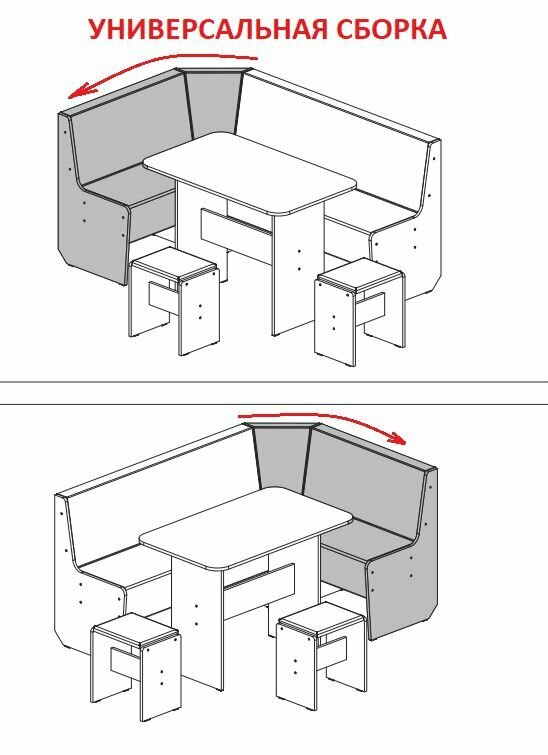 | Комплектация | Скамья угловая - 1шт., стол - 1шт., табурет - 2шт., фурнитура, паспорт изделия |