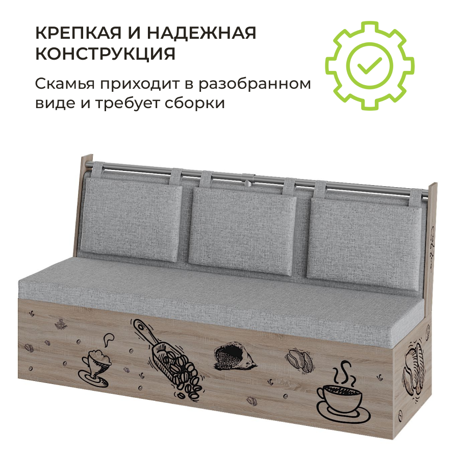 Скамья прямая Роденго BONMEBEL, Ателье светлый/Ловерс серый. Механизм не раскладной.