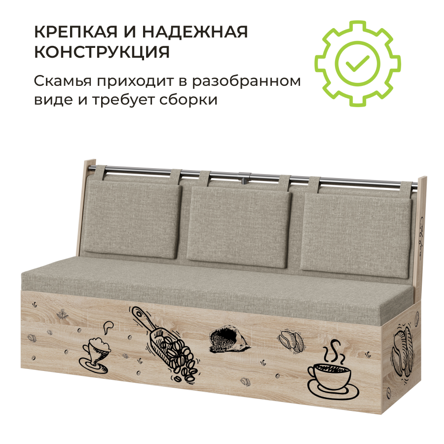 Скамья прямая Роденго BONMEBEL, Дуб сонома трюфель/Рогожка бежевый, механизм не раскладной.