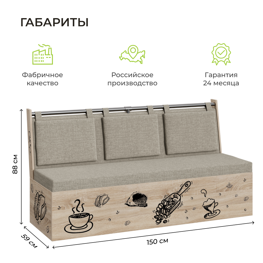 СохранитьСкамья прямая Роденго BONMEBEL, Дуб сонома/Рогожка бежевый, механизм не раскладной интересное: