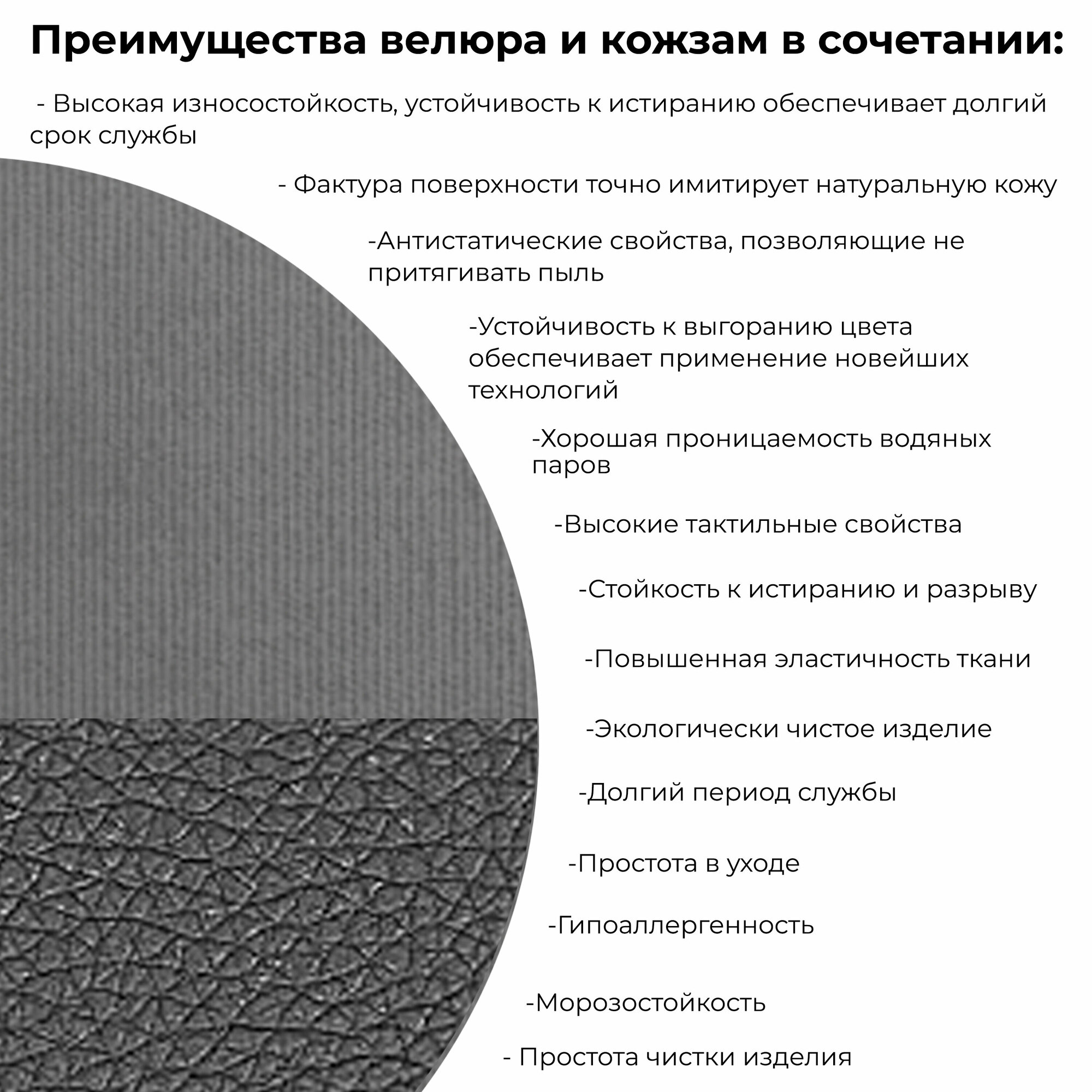 | Цвет товара | Кашемир крем, Кожзам светло-коричневый/Велюр мокко светлый, Кожзам серый/Велюр серый |