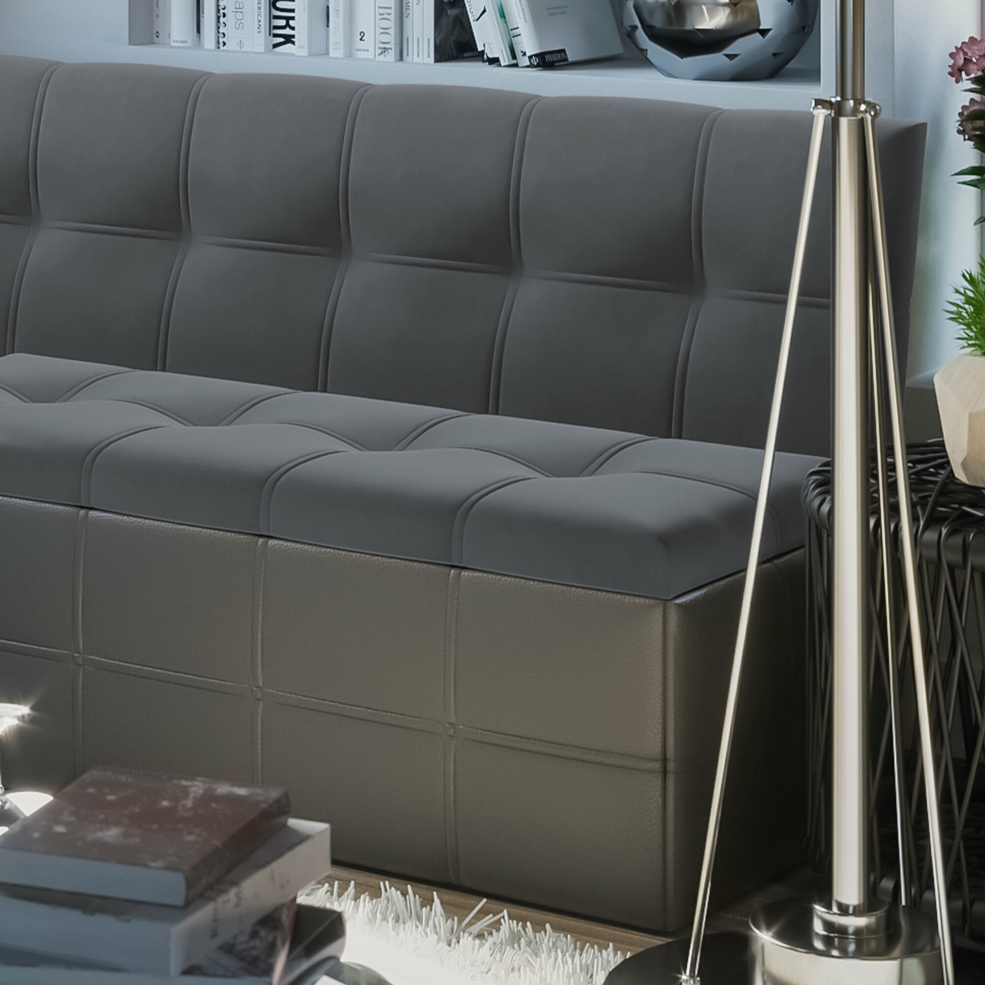 Кухонный уголок со спальным местом, диван на кухню Домино исп.2 (Кожзам серый/Велюр серый)