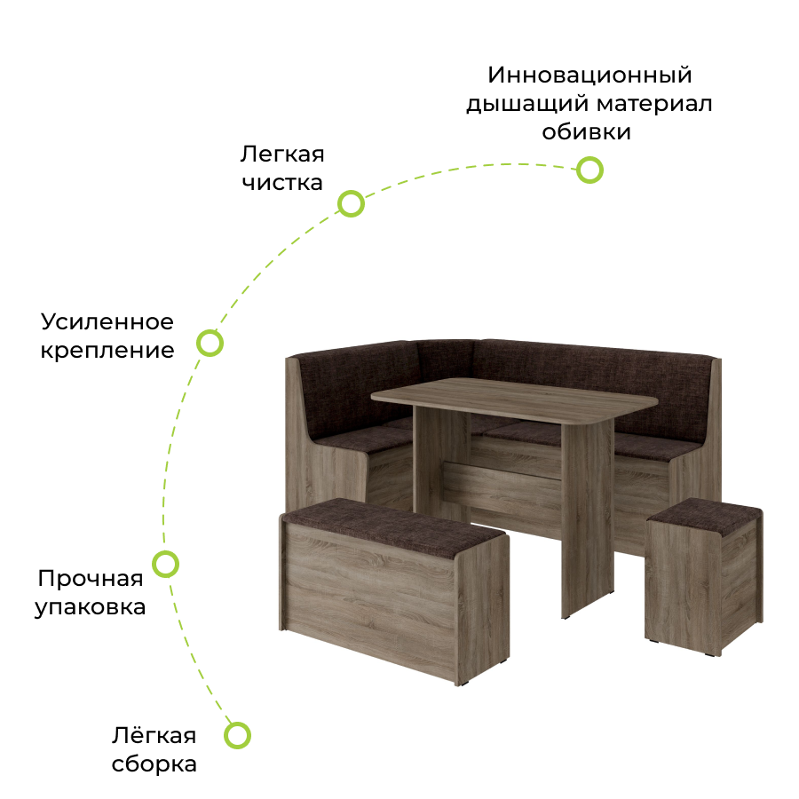 Кухонный уголок Чикаго BONMEBEL Ателье светлый/ТК коричневый, 159х109,8х79,8 см
