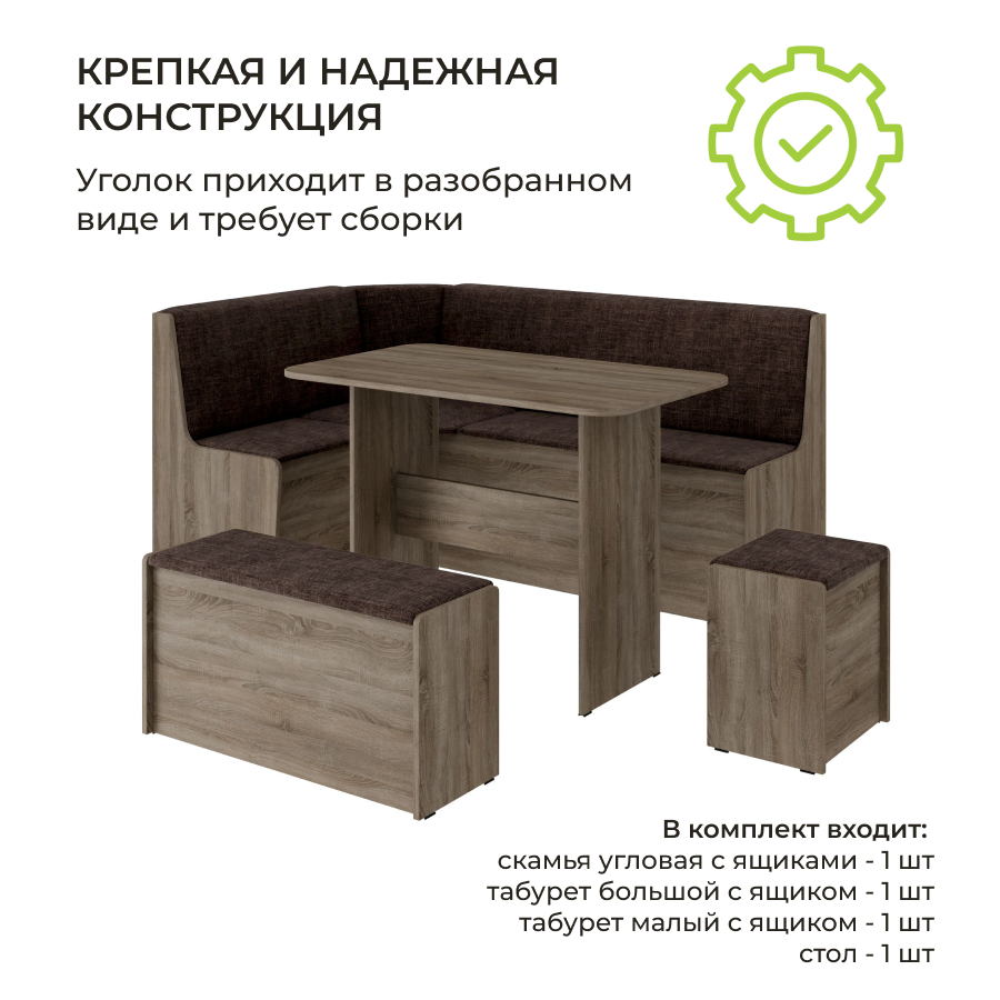 Купить Кухонный уголок Чикаго BONMEBEL Дуб сонома трюфель/ТК коричневый, 159х109,8х79,8 см
