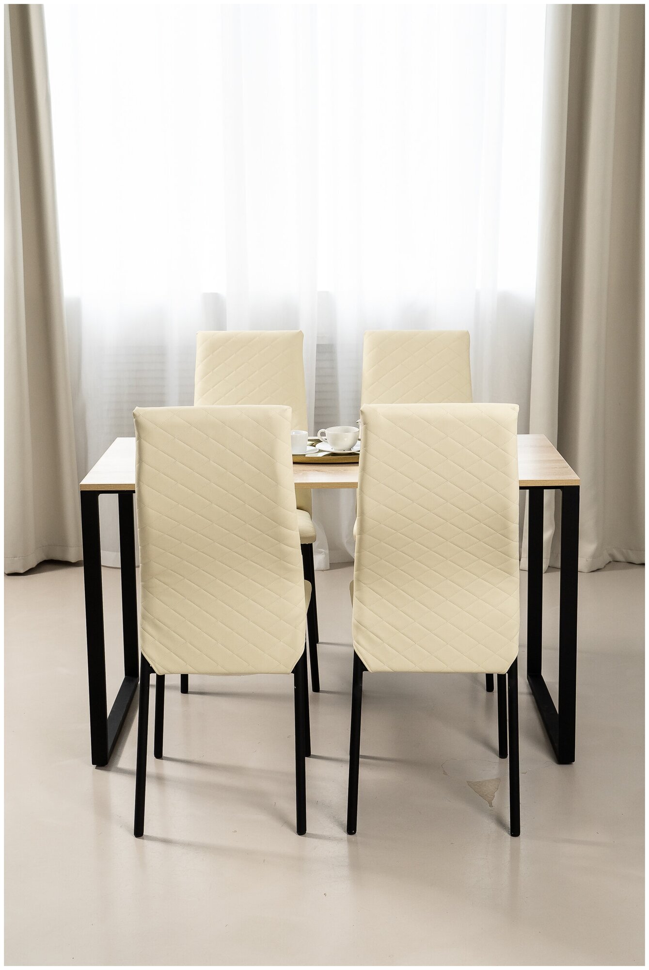 Обеденная группа Стол и 4 стула, стол «Дуб Сонома» 120х60х75, стулья Бежевые Исскуственая кожа 4 шт. интересное: