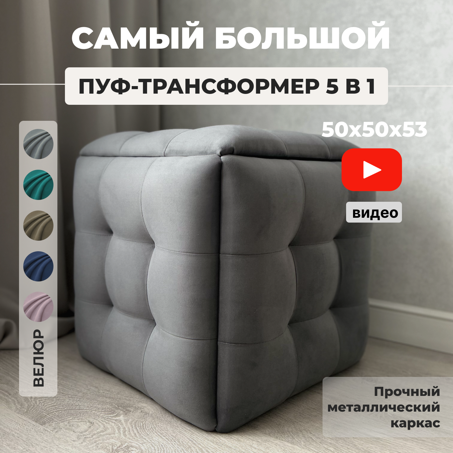 СохранитьПуф трансформер 5 в 1 темно-серый, велюр, 50х50х53 см, Divan24 интересное: