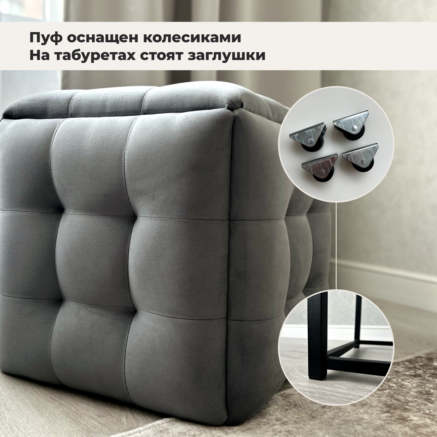 Купить Пуф трансформер 5 в 1 темно-серый, велюр, 50х50х53 см, Divan24