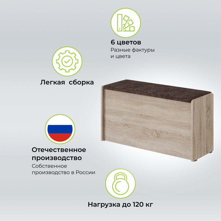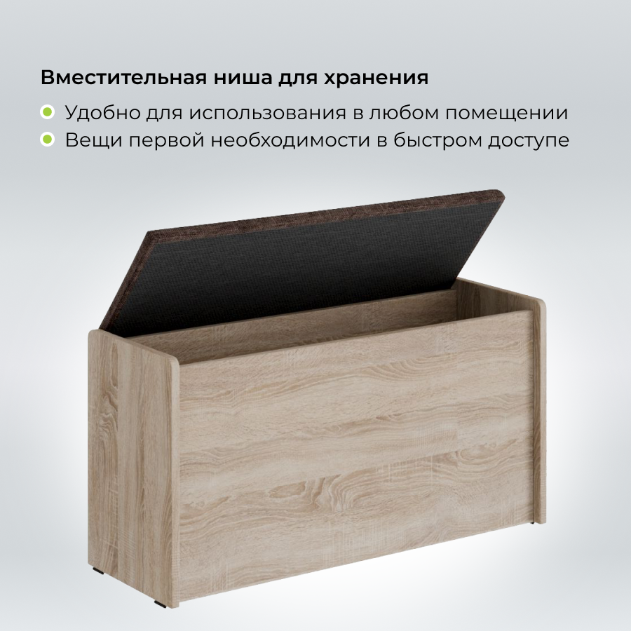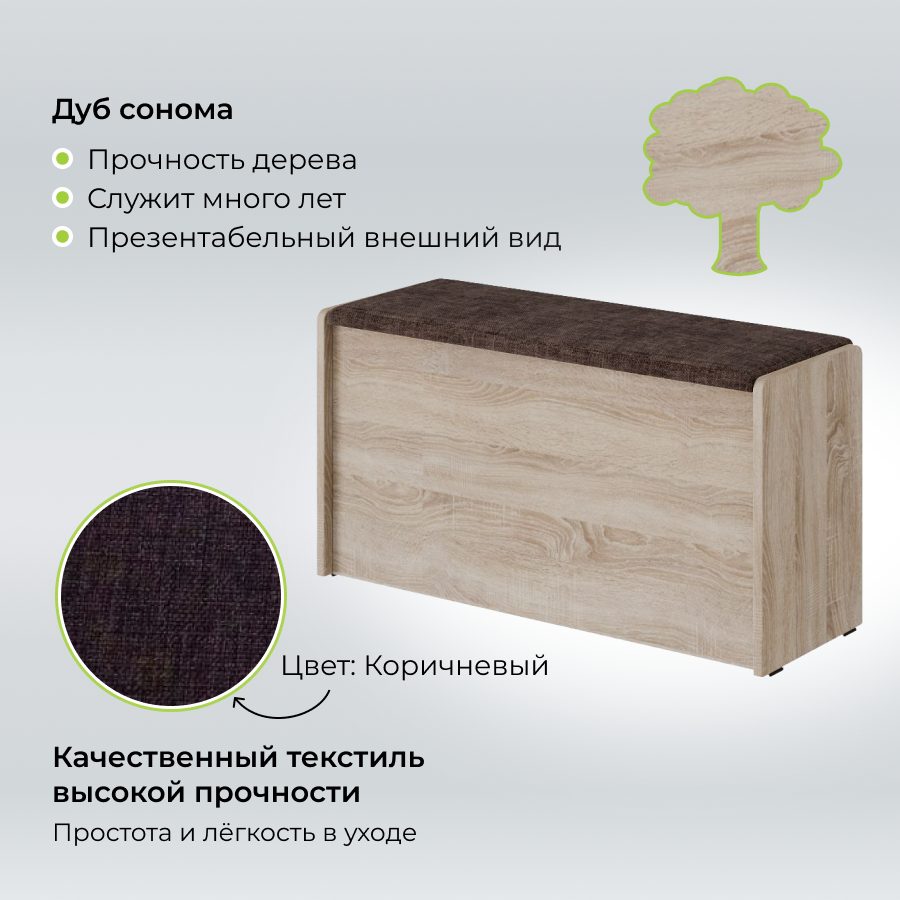 СохранитьПуф Чикаго Тип 2, Дуб сонома/Рогожка Коричневый, банкетка в прихожую, скамья для кухни с ящиком для хранения интересное:
