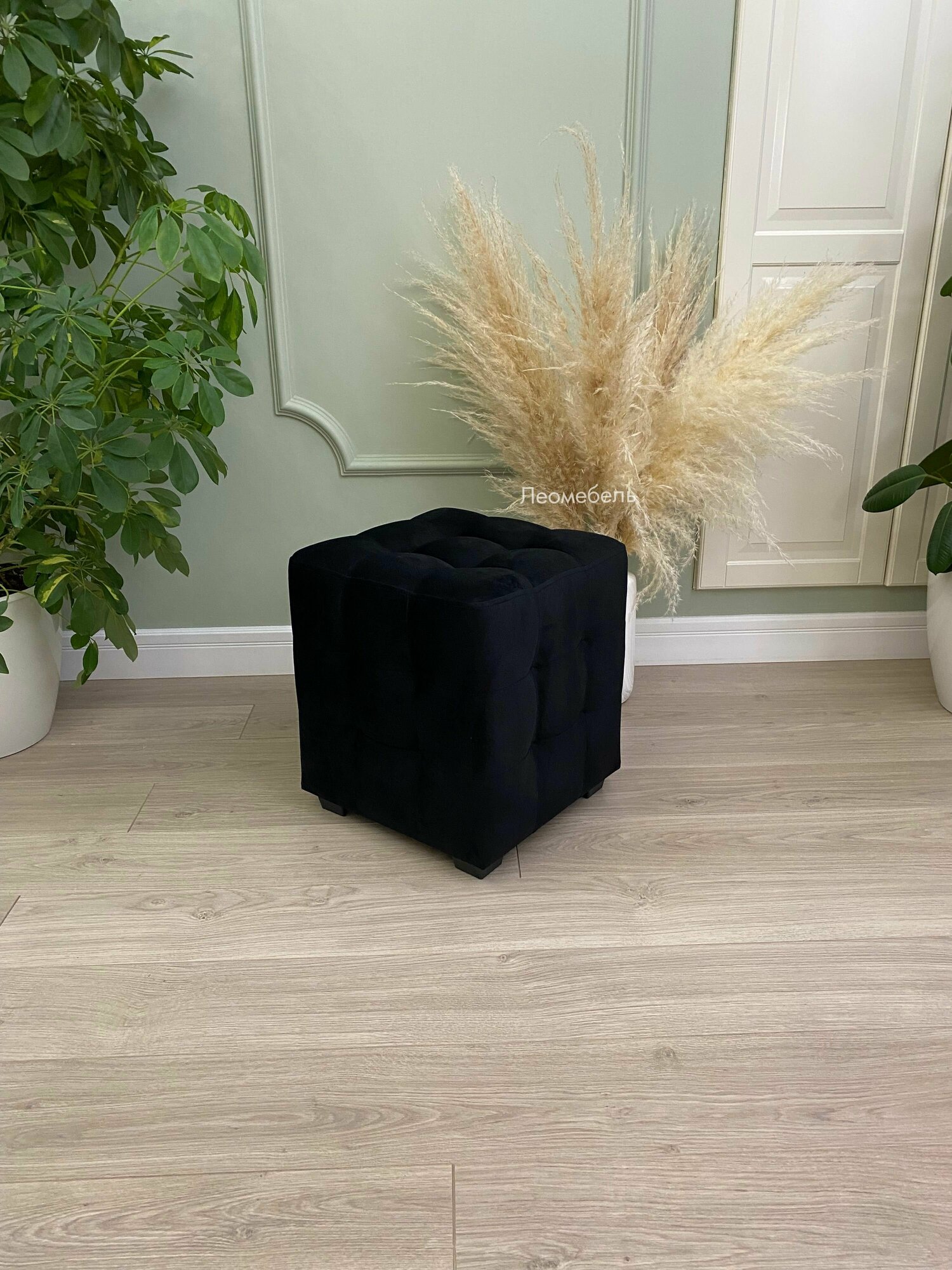 Купить Пуфик для прихожей Леомебель велюровый 43,5х39х39 Черный