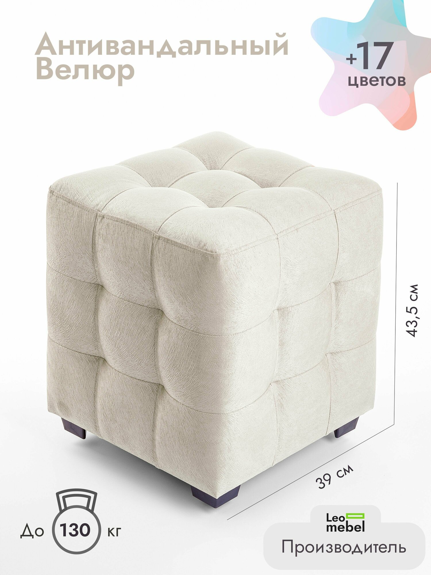 Пуфик для прихожей Леомебель велюровый 43,5х39х39 Светло-бежевый