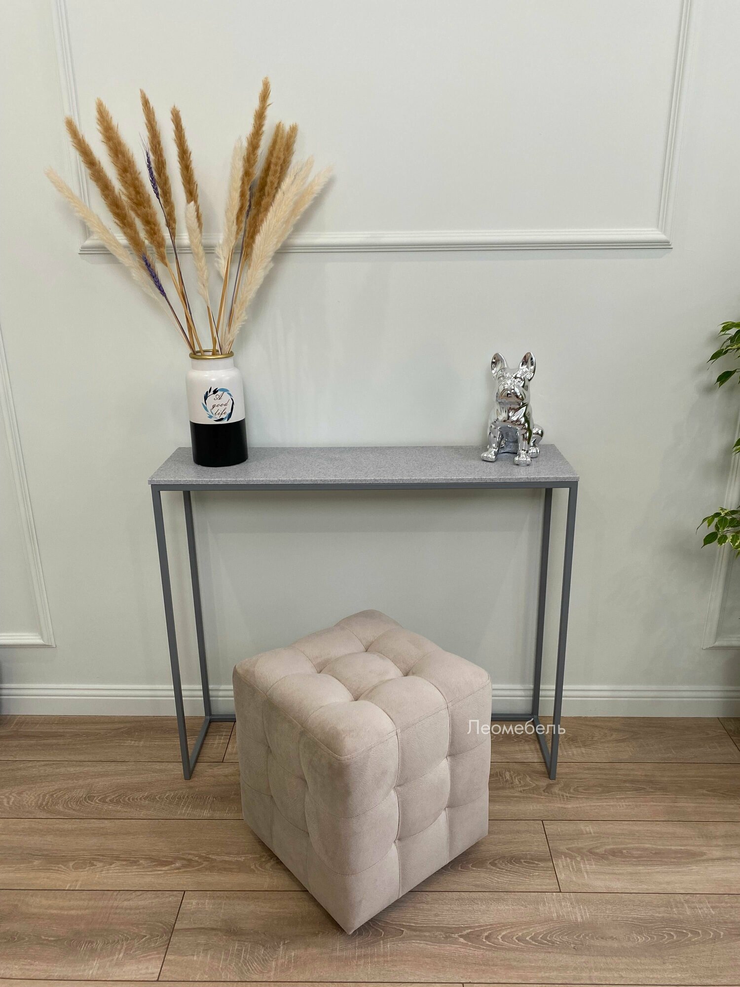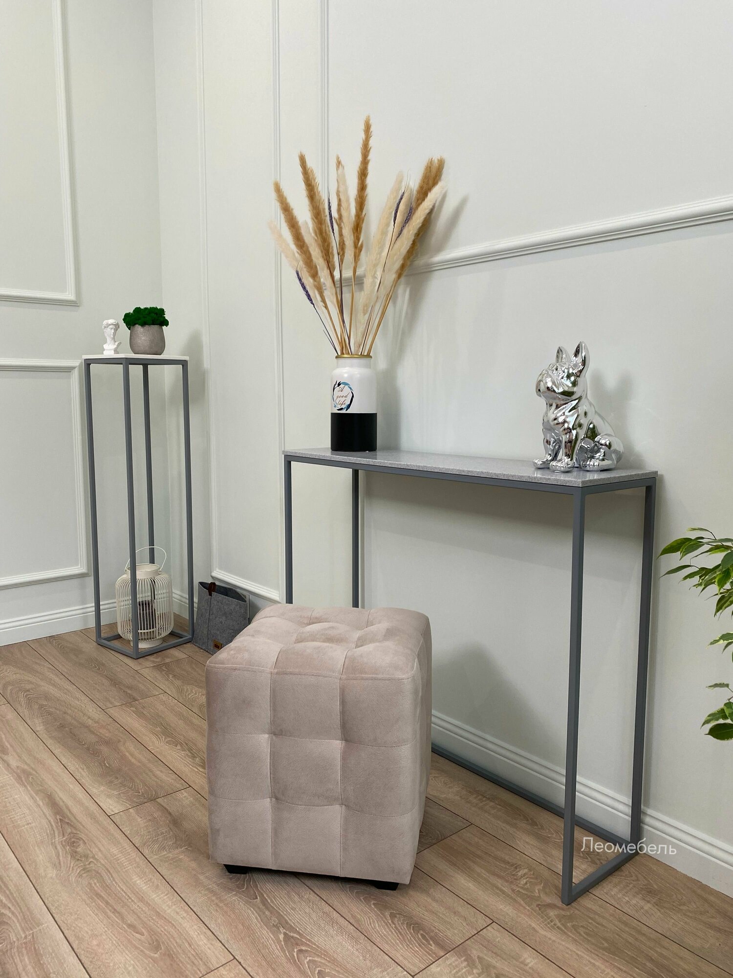 Пуфик для прихожей Леомебель велюровый 43,5х39х39 Серый