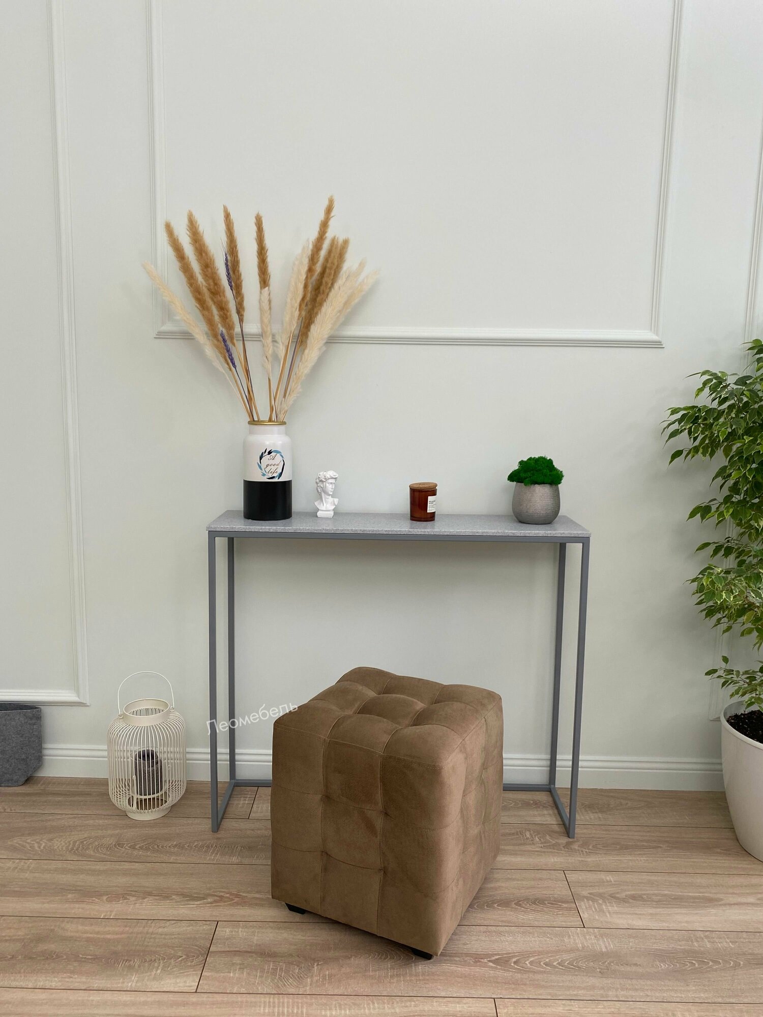 Пуфик для прихожей Леомебель велюровый 43,5х39х39 Серый