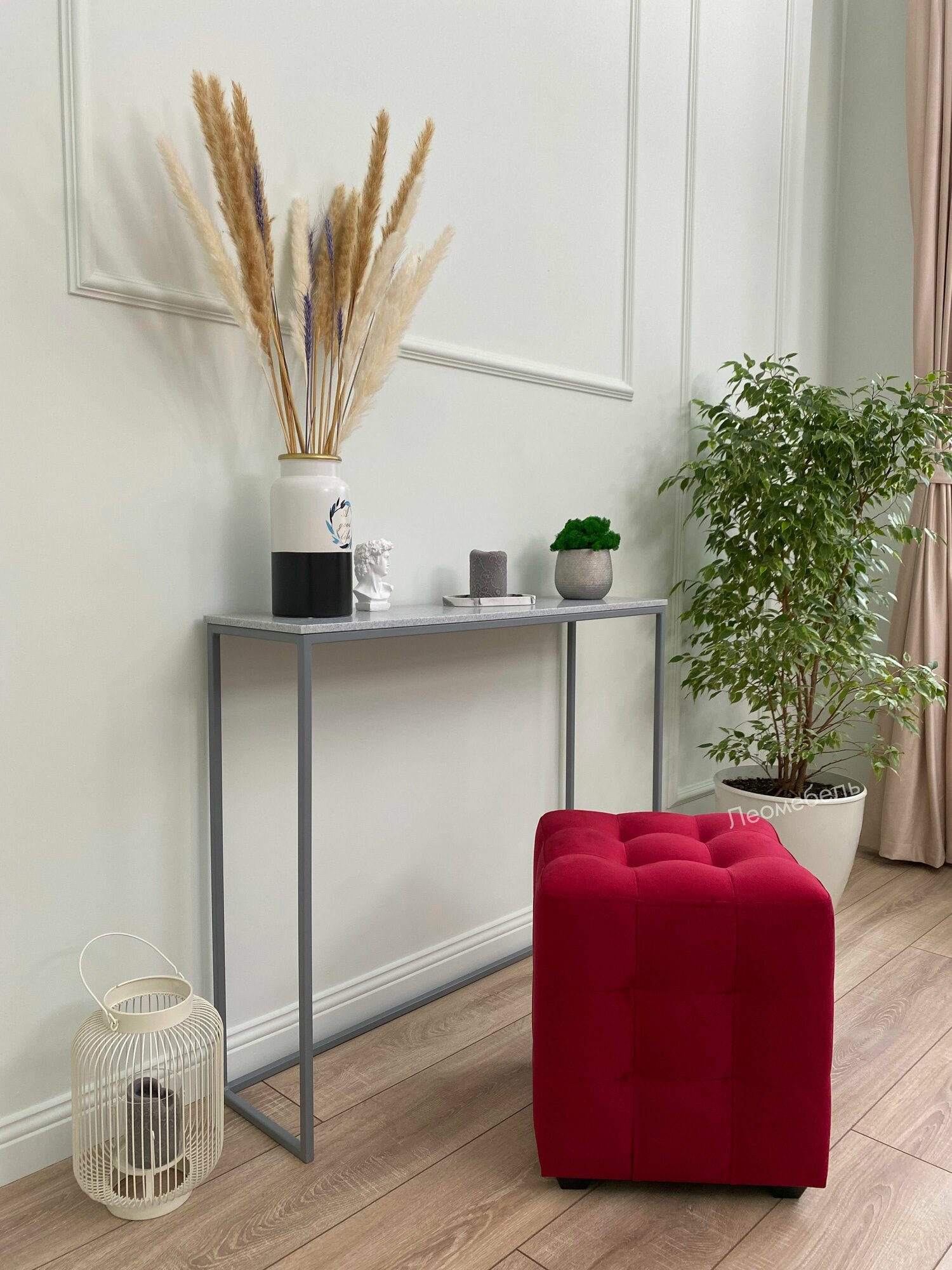 Купить Пуфик для прихожей Леомебель велюровый 43,5х39х39 Красный