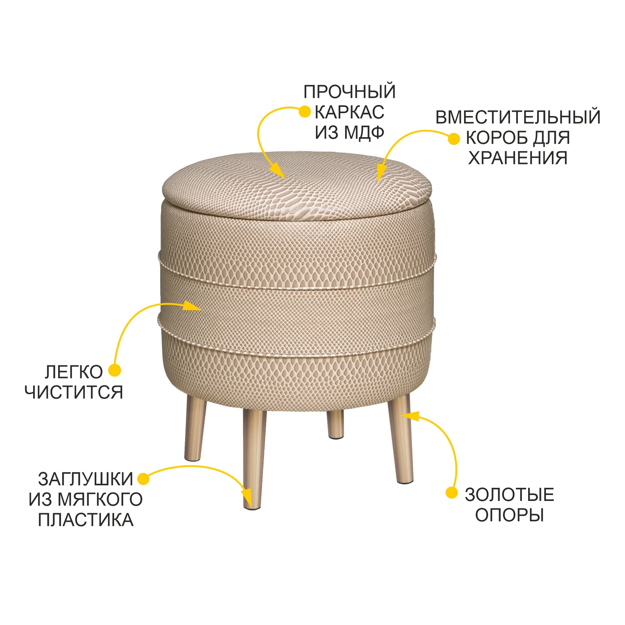 Пуф Монро 10 (01) Бежевый, 40х40х45 см