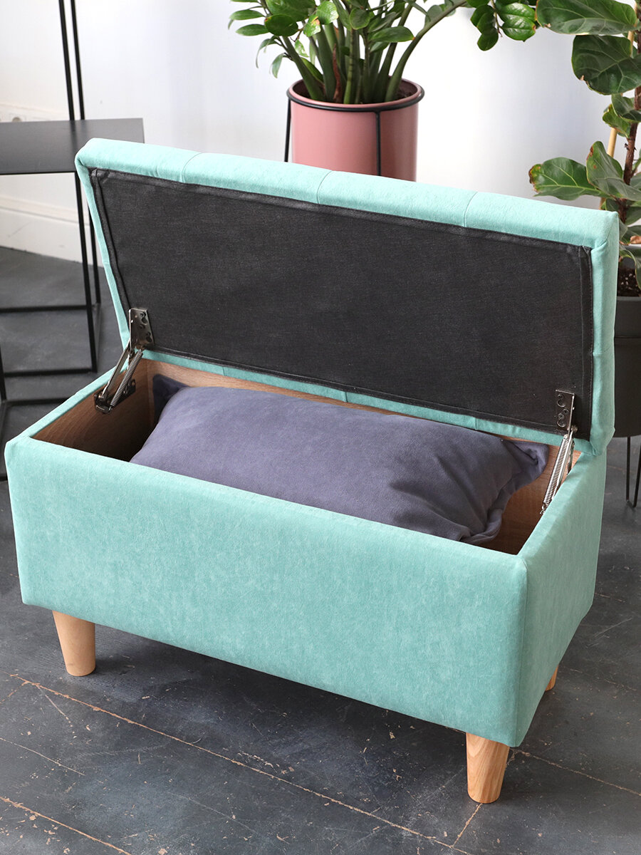 СохранитьПуфик, банкетка в прихожую / Подставка для ног; пуф с ящиком для хранения для спальни, для детской, для балкона, для кухни, мятный, 700х400х340 интересное: