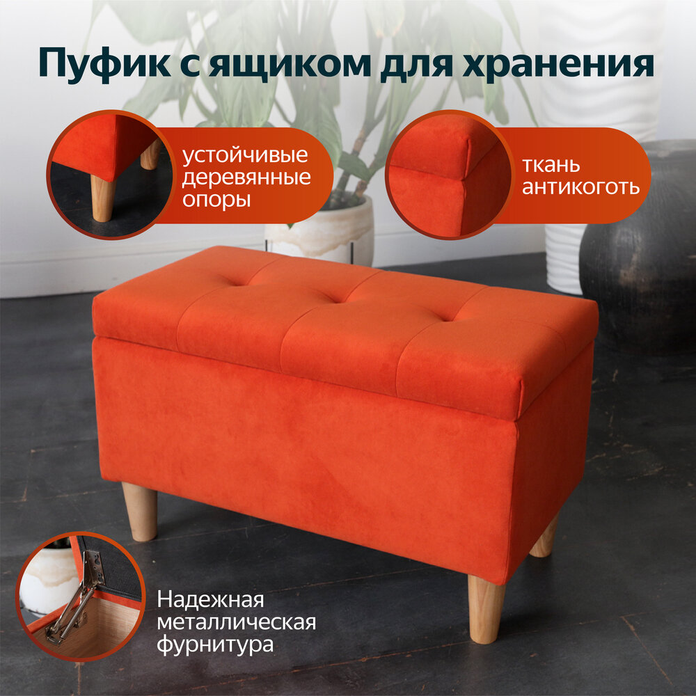 Пуфик, банкетка в прихожую / Подставка для ног; пуф с ящиком для хранения для спальни, для детской, для балкона, для кухни, оранжевый, 700х400х340