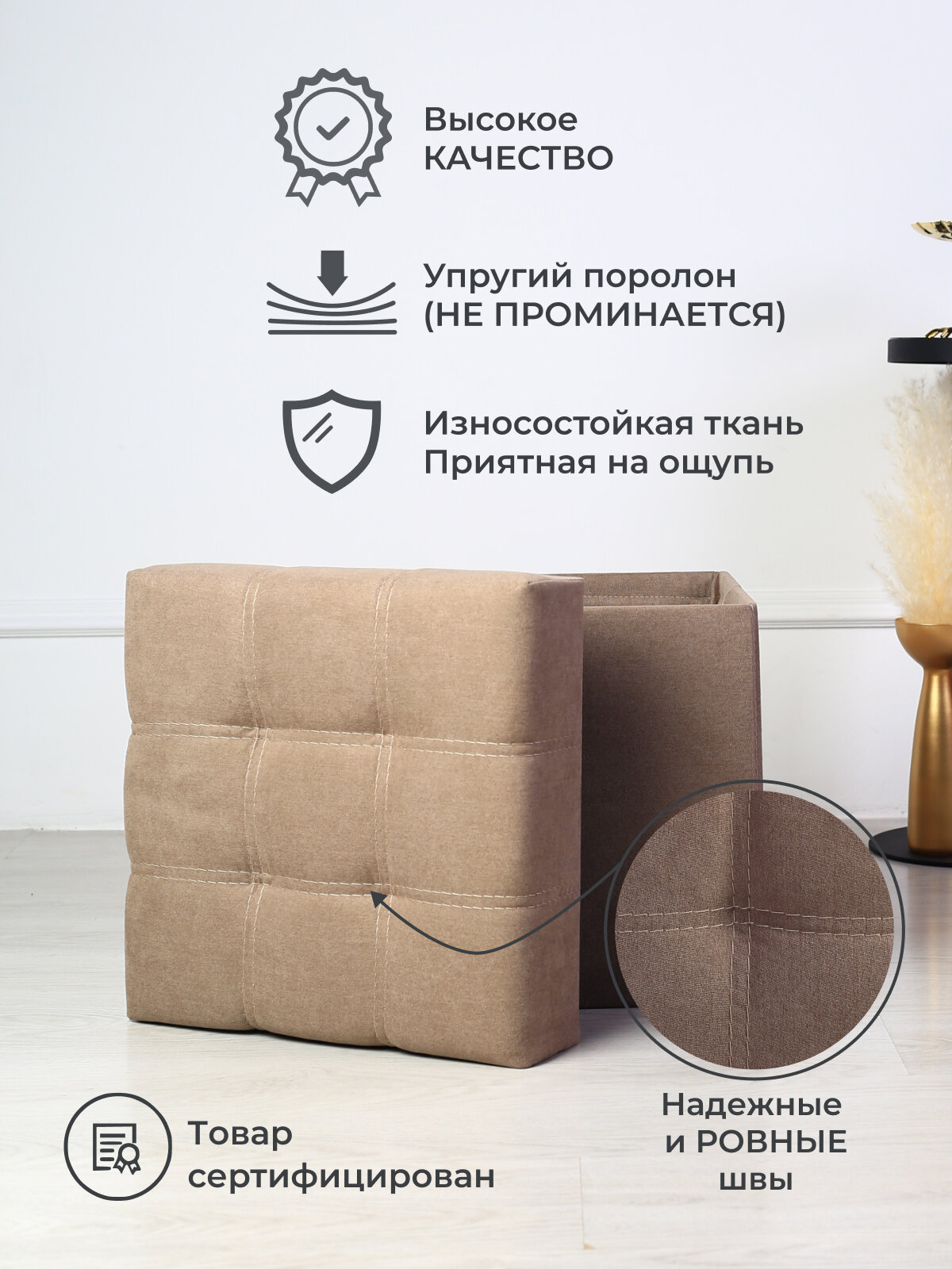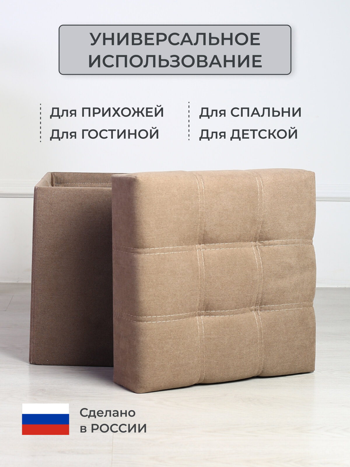 Пуфик для прихожей с ящиком для хранения от Div-one, 37*37*40 см, кофейный интересное: