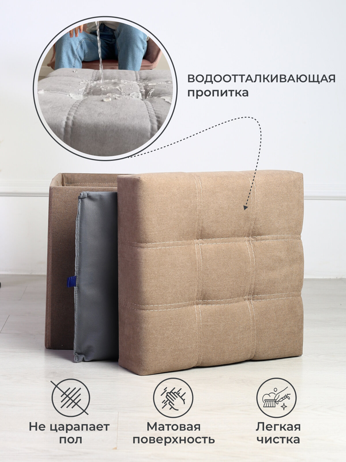 Пуфик для прихожей с ящиком для хранения от Div-one, 37*37*40 см, бежевый