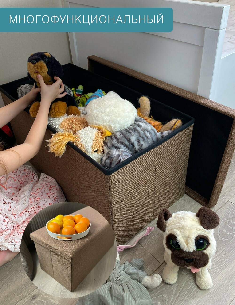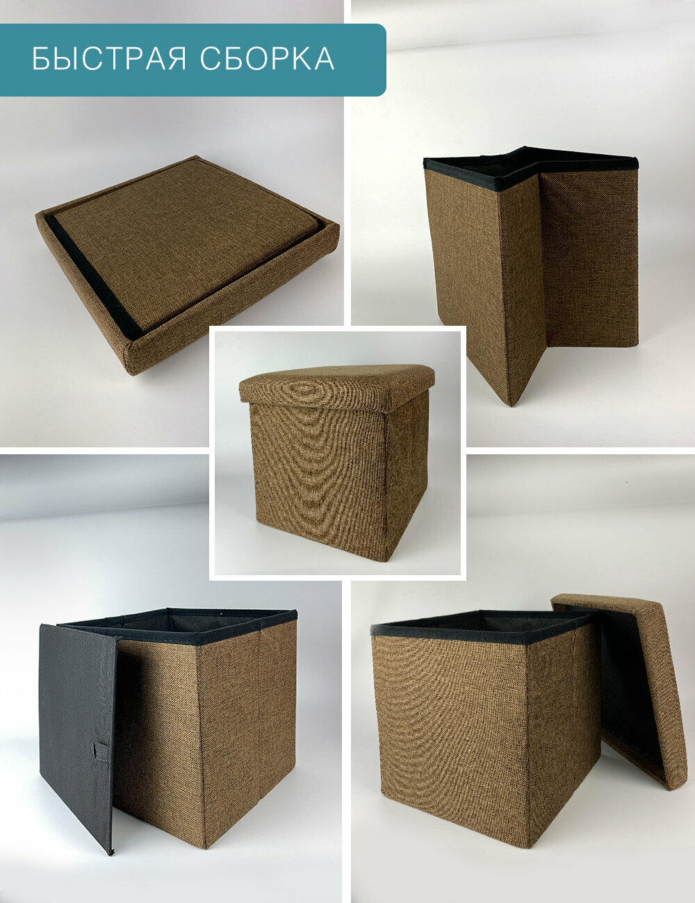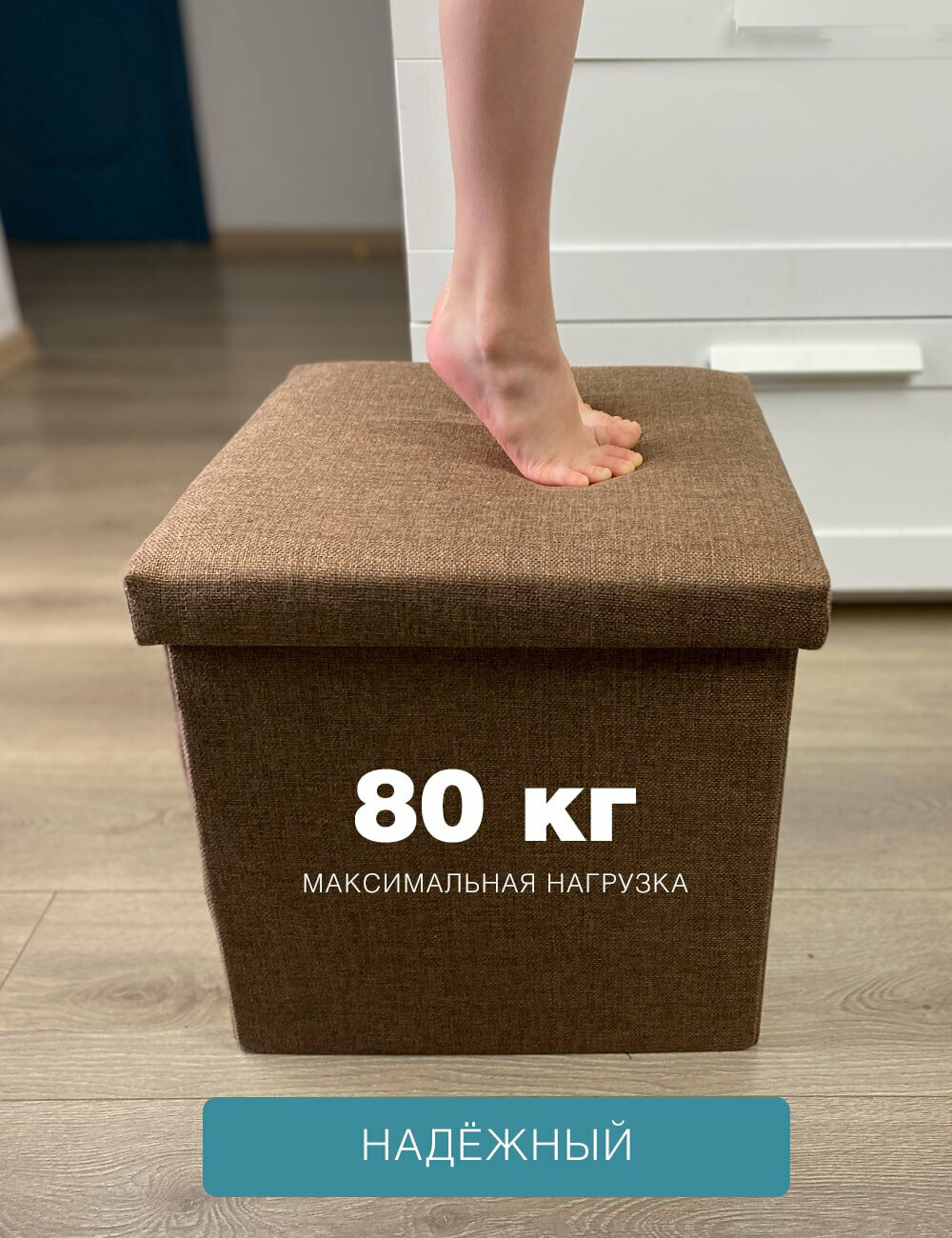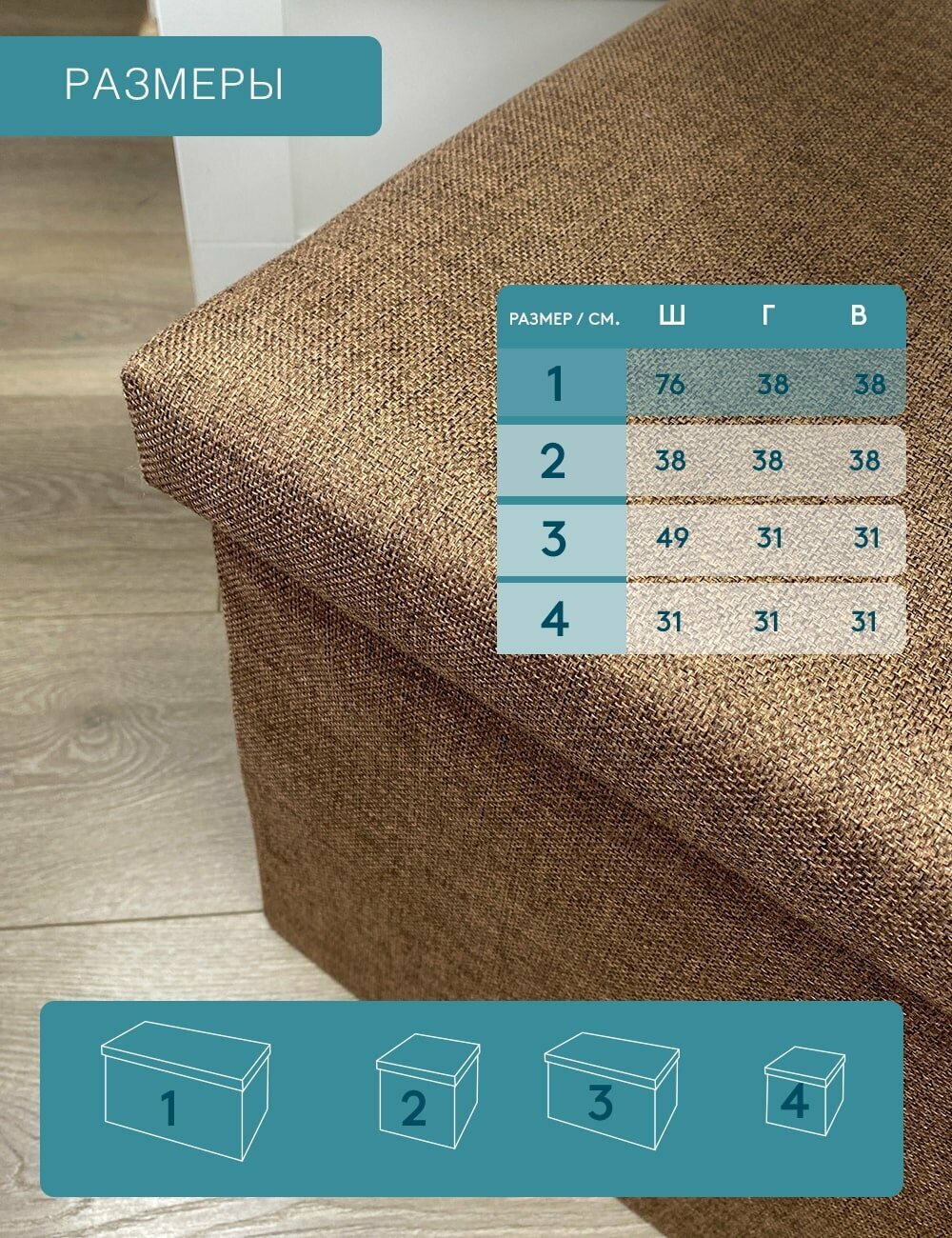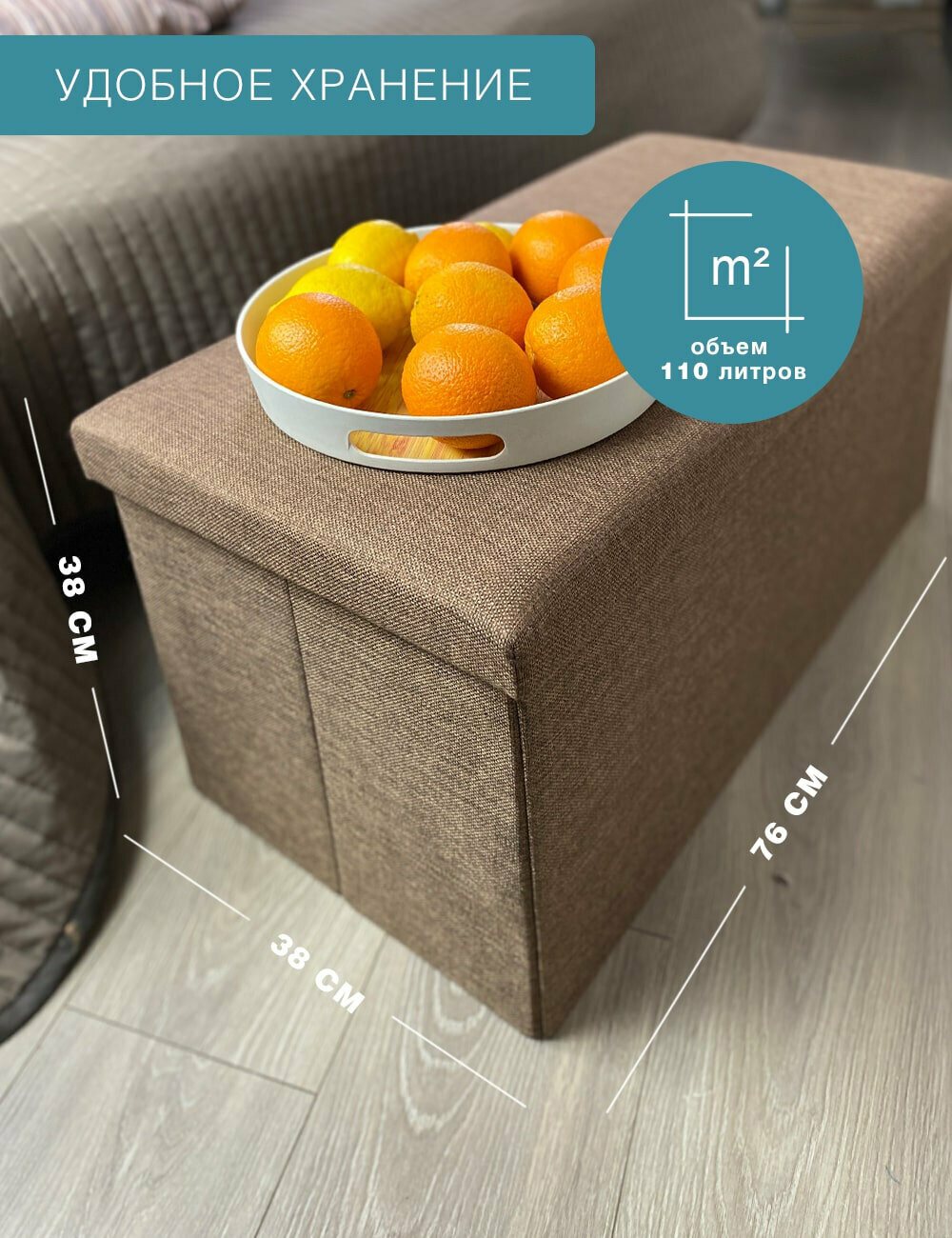 Короб складной гелеос Пуф 76-БР, размер 76х38х38 см, коричневый