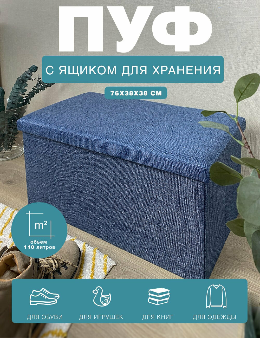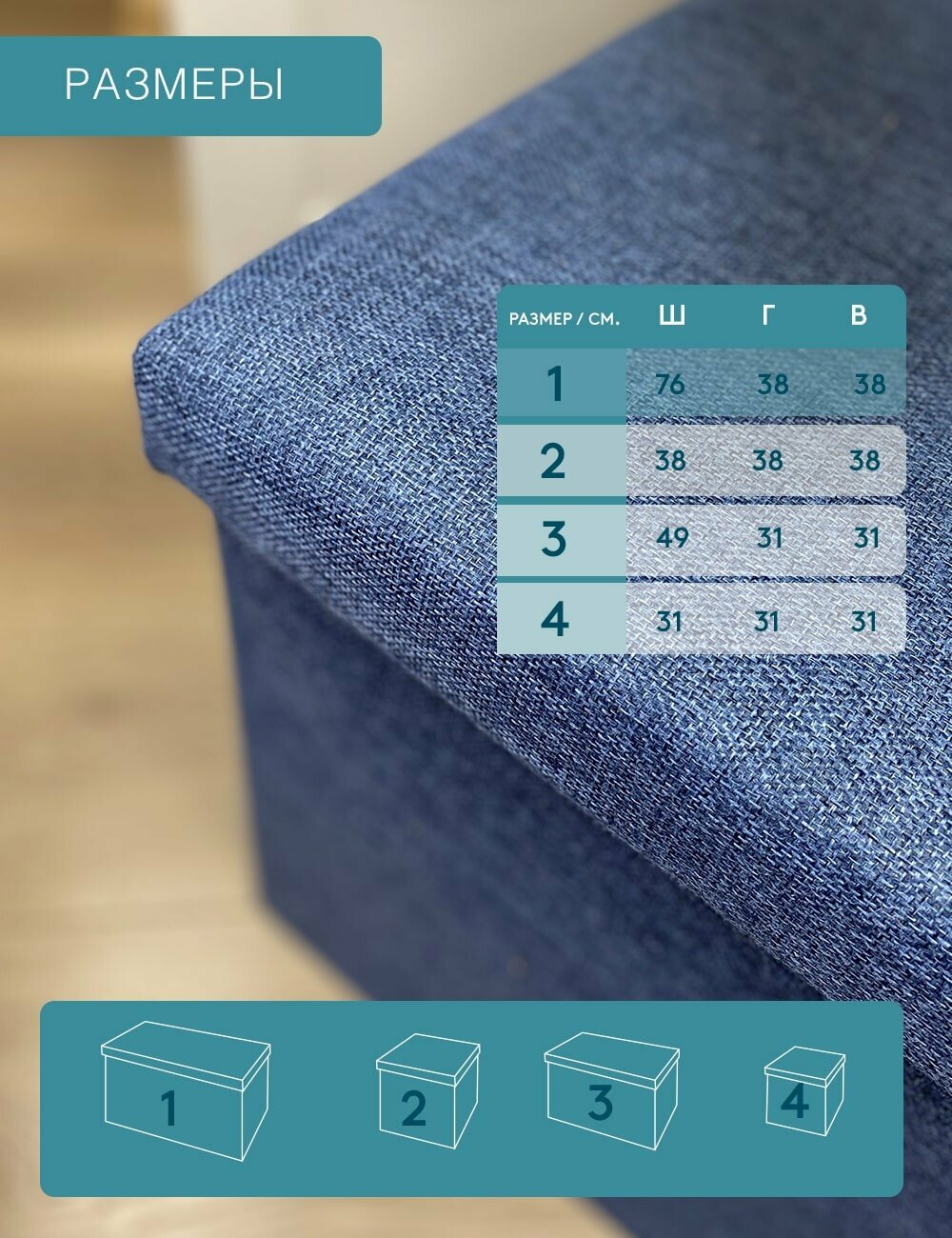 Короб складной гелеос Пуф 76-ГЛ, размер 76х38х38 см, бирюзовый
