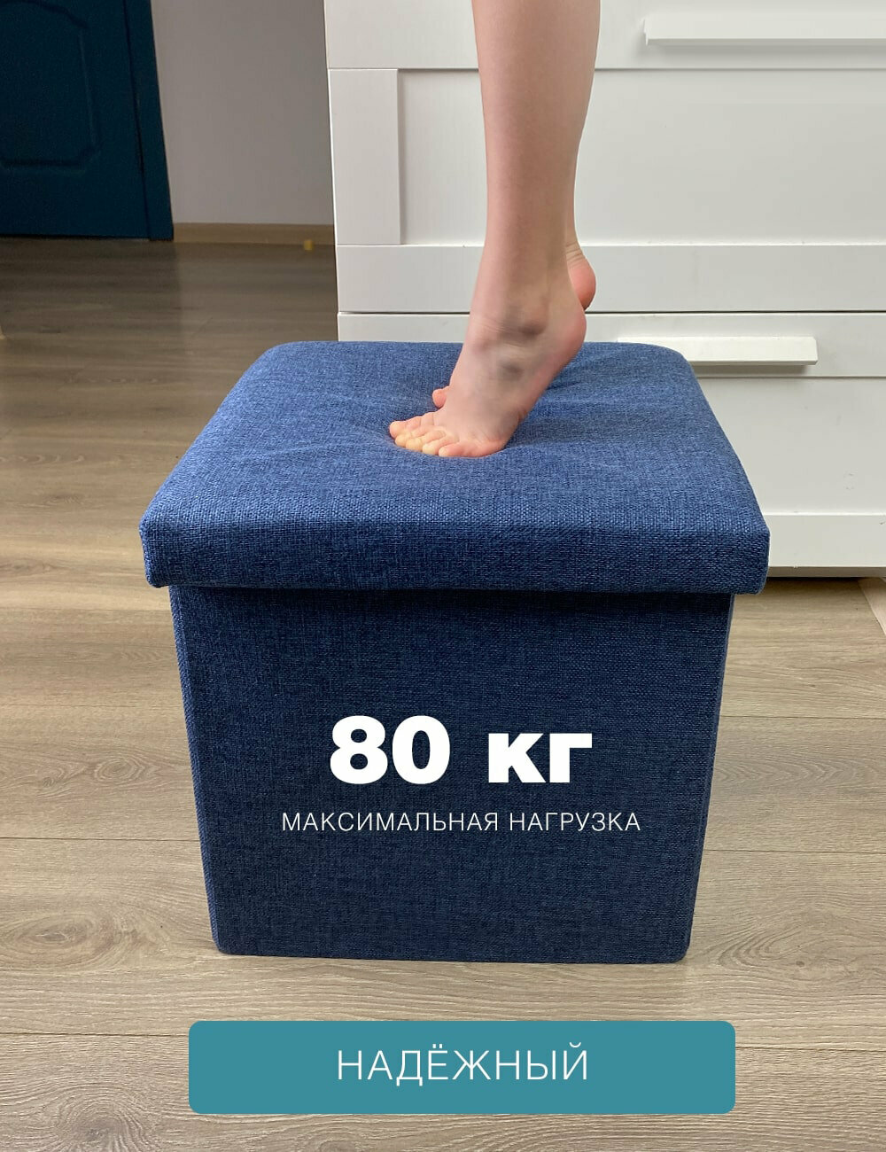 Купить Короб складной гелеос Пуф 76-НВ, размер 76х38х38 см, синий