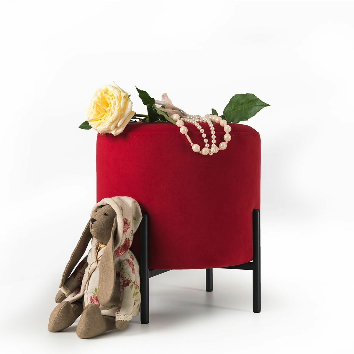 СохранитьПуф. Пуфик круглый SAMOYLOV MEBEL в прихожую. Банкетка для туалетного столика красный интересное: