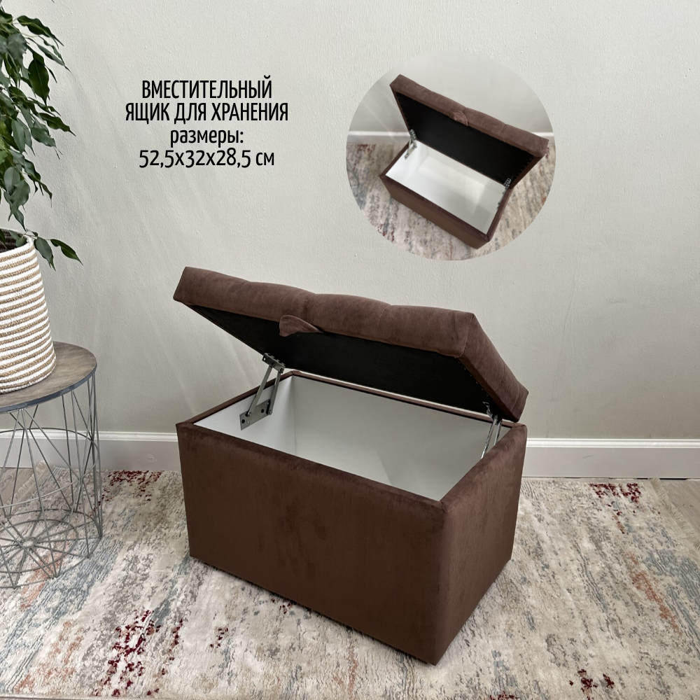Купить Пуфик в прихожую спальню с ящиком для хранения, 58х38х38, шоколадный
