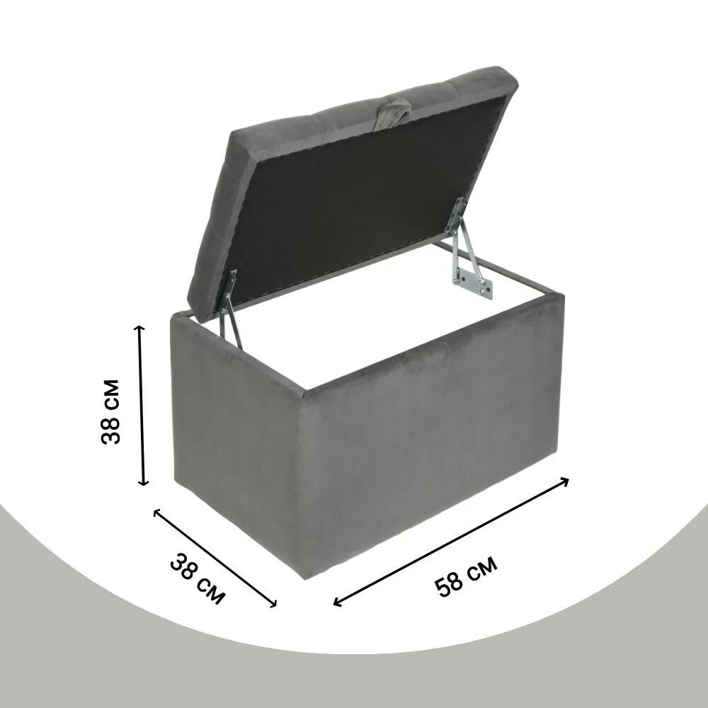 Пуфик в прихожую спальню с ящиком для хранения, 58х38х38, графит
