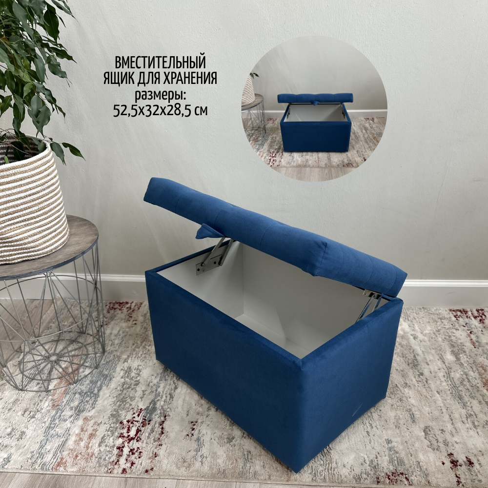 СохранитьПуфик в прихожую спальню с ящиком для хранения, 58х38х38, синий интересное: