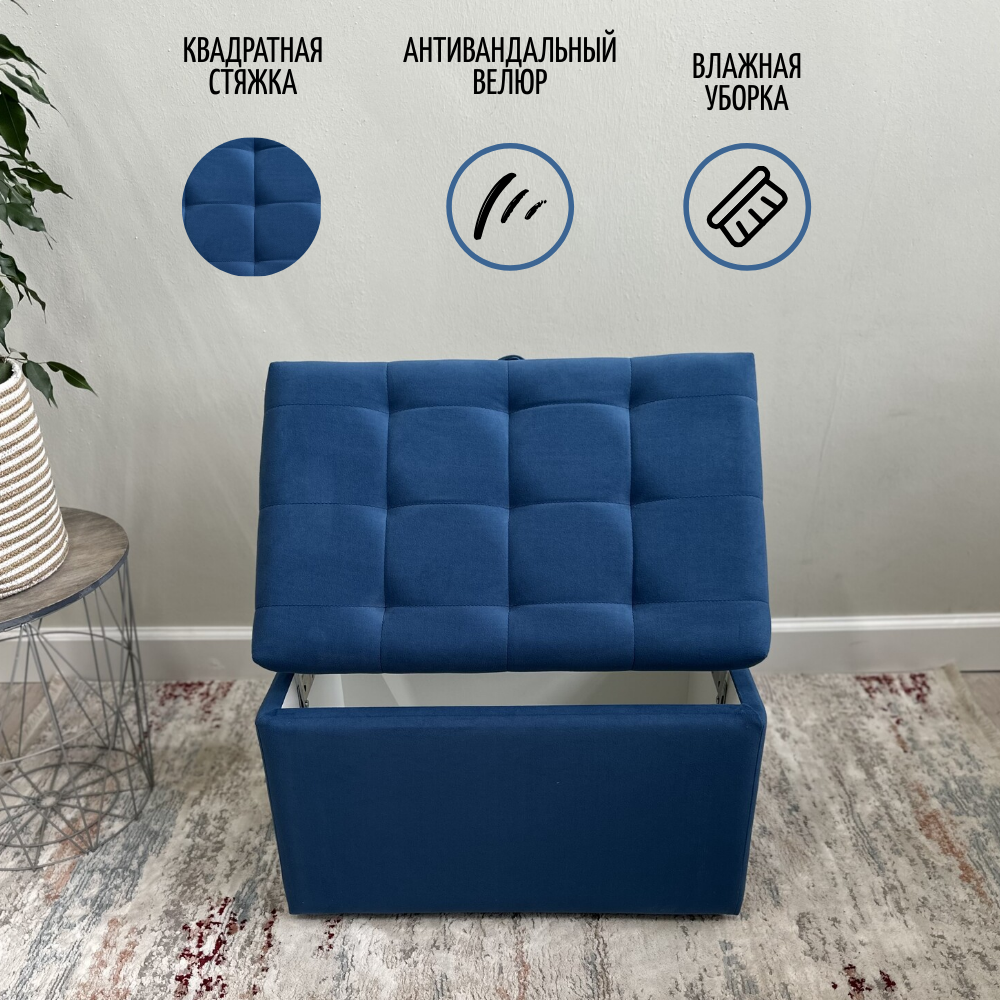 Купить Пуфик в прихожую спальню с ящиком для хранения, 58х38х38, синий