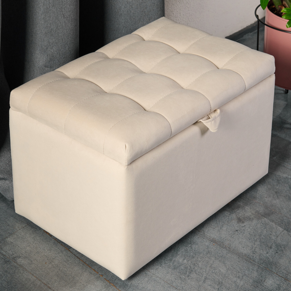 Пуфик в прихожую спальню с ящиком для хранения, 58х38х38, темно-бежевый