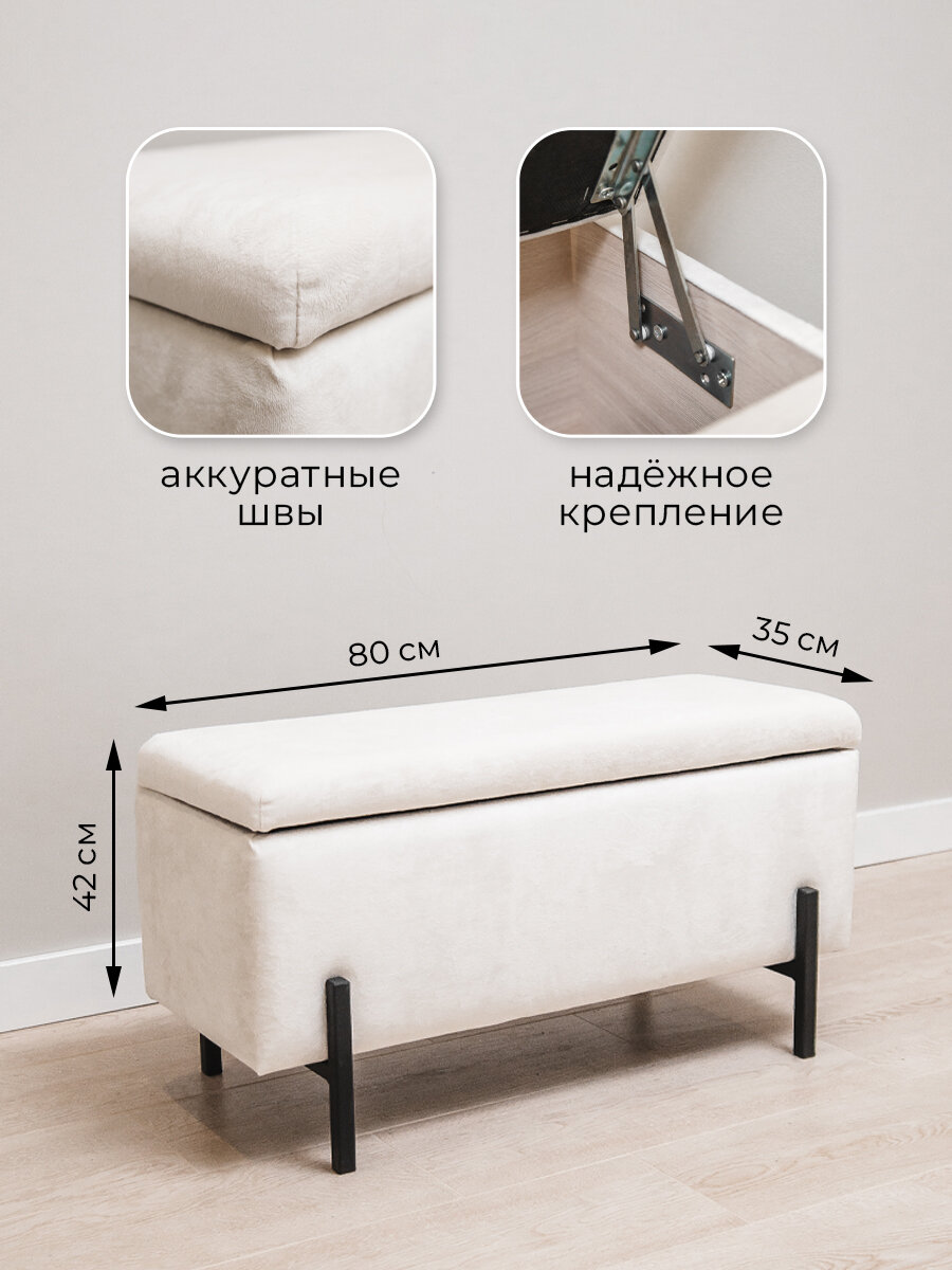 Пуфик в прихожую, пуф банкетка с ящиком для хранения 80*35*42, белый интересное: